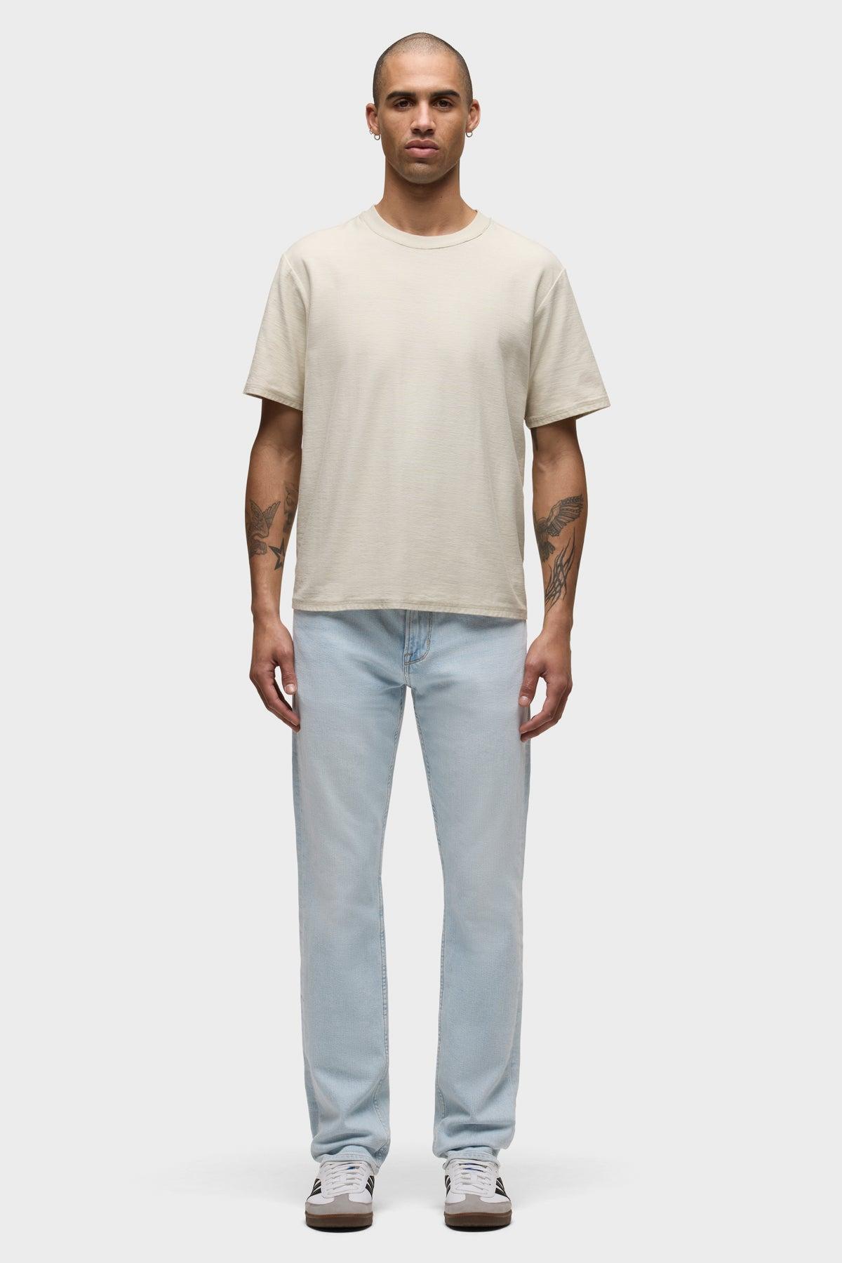 Description Can’t beat Blake, our modern, just-right fit. Mid-rise, slim through the hip and thigh with a tapered leg. A classic. This pair features a super light indigo wash and is made of rigid denim with classic five-pocket detailing. Product Details Front Rise: 10.25", Knee: 16.5", Leg Opening: 14.5", Inseam: 34"Model Height 6’1"Model wearing size M/32Measurements based on size M/32 Fabric & Care Content: 100% Cotton Machine wash cold gentle cycle Only non-chlorine bleach when needed Tumble dry low Medium iron if needed