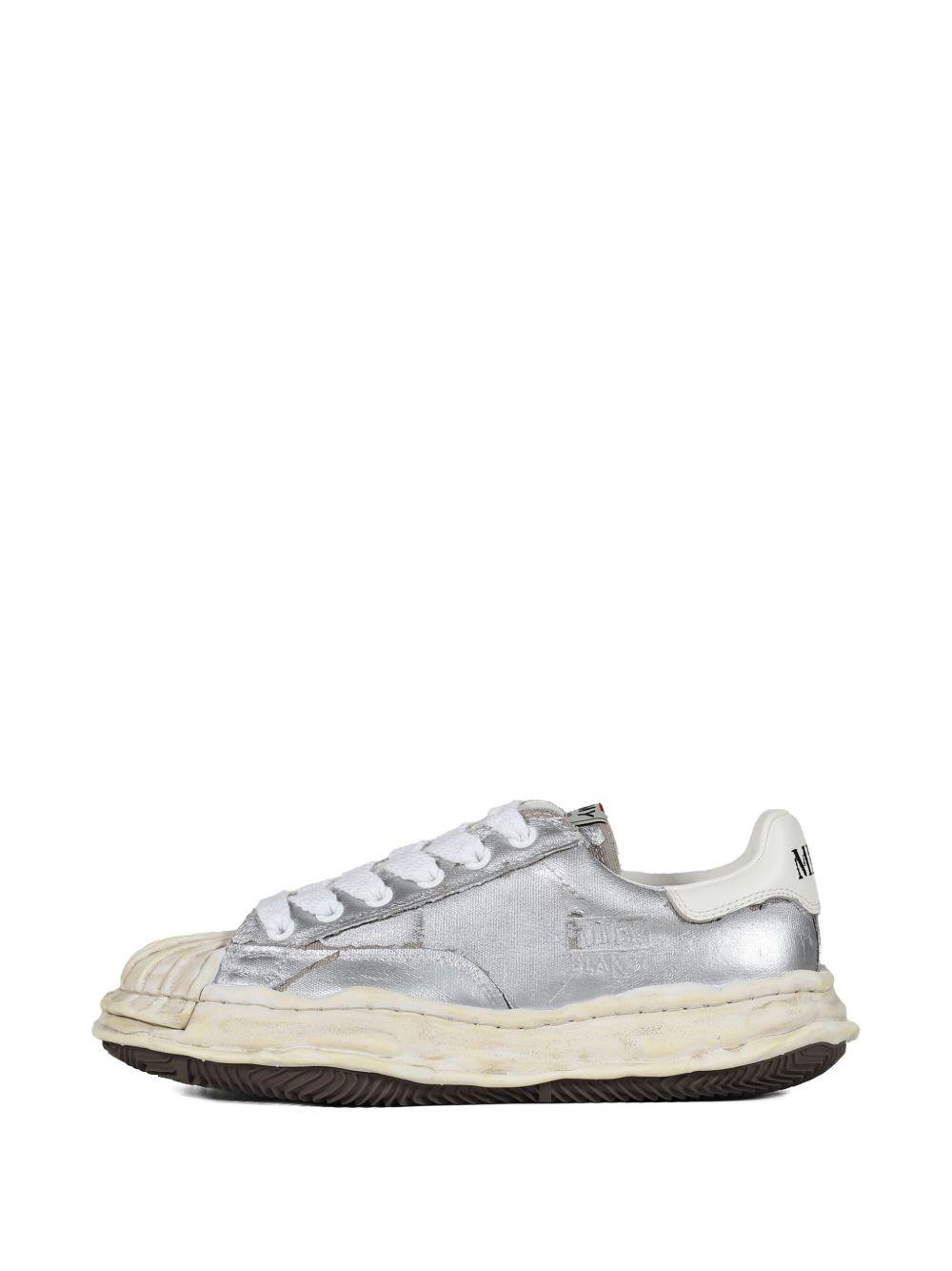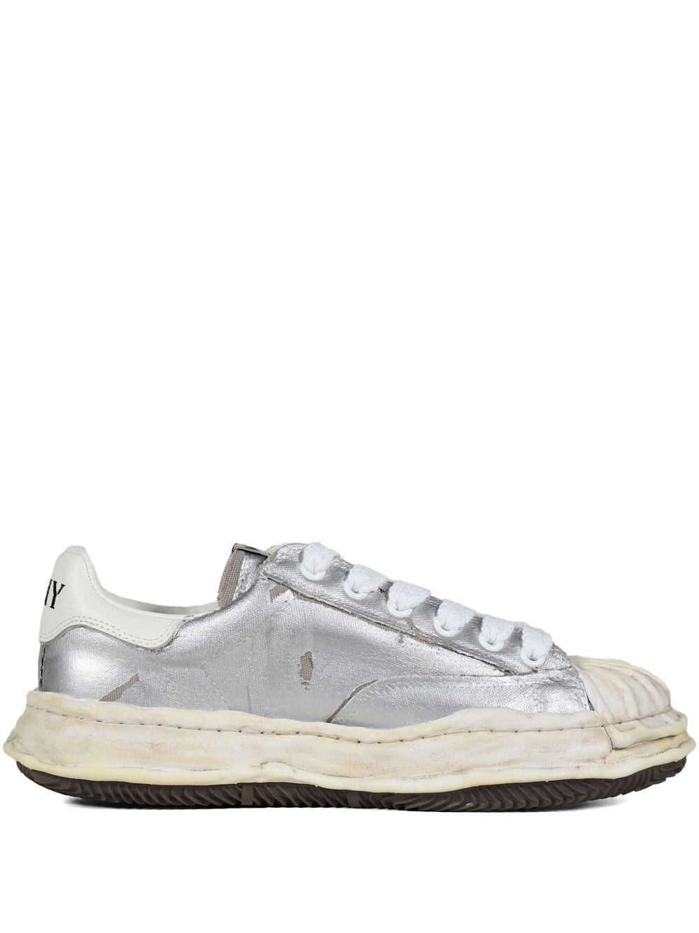 Maison MIHARA YASUHIRO Blakey distressed-leather lace-up sneakers | Grey | silver-tone | leather upper | distressed effect | lace-up fastening | platform sole | rubber sole | Calf Leather/Rubber/Calf Leather | Low-Tops | Trainers | Shoes | Women | Low-Tops | Sneakers | Shoes | Men