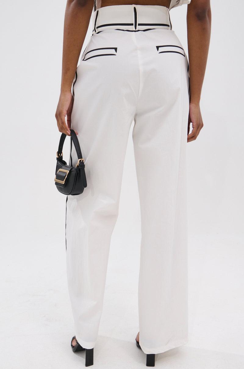 Minimalism gets a bold refresh in The AKIRA Label Blank Space High Waist Palazzo Pant. Crafted from a crisp, woven fabric, these minimalist bottoms feature contrast piping and mock pant details on the hemlines, a high-rise fit, an elasticized waistband, functional belt loops, waist pockets, and a relaxed wide-leg silhouette. Complete with a concealed front zipper and dual hook-and-bar fastenings. Style with the coordinating AKIRA Label Blank Space Cropped Short Sleeve Button Down, kitten heels, and metallic accessories for a sleek finish. - 55% Cotton 45% Polyester- Hand Wash or Dry Clean- Some Stretch- Imported (all measurements approximate from size small)- 13” Rise- 31” Inseam- Model is 5’9” and is wearing size smallProduct ID: 1041868 (all measurements approximate from size 1X)- 15” Rise- 33” InseamProduct ID: 1041872