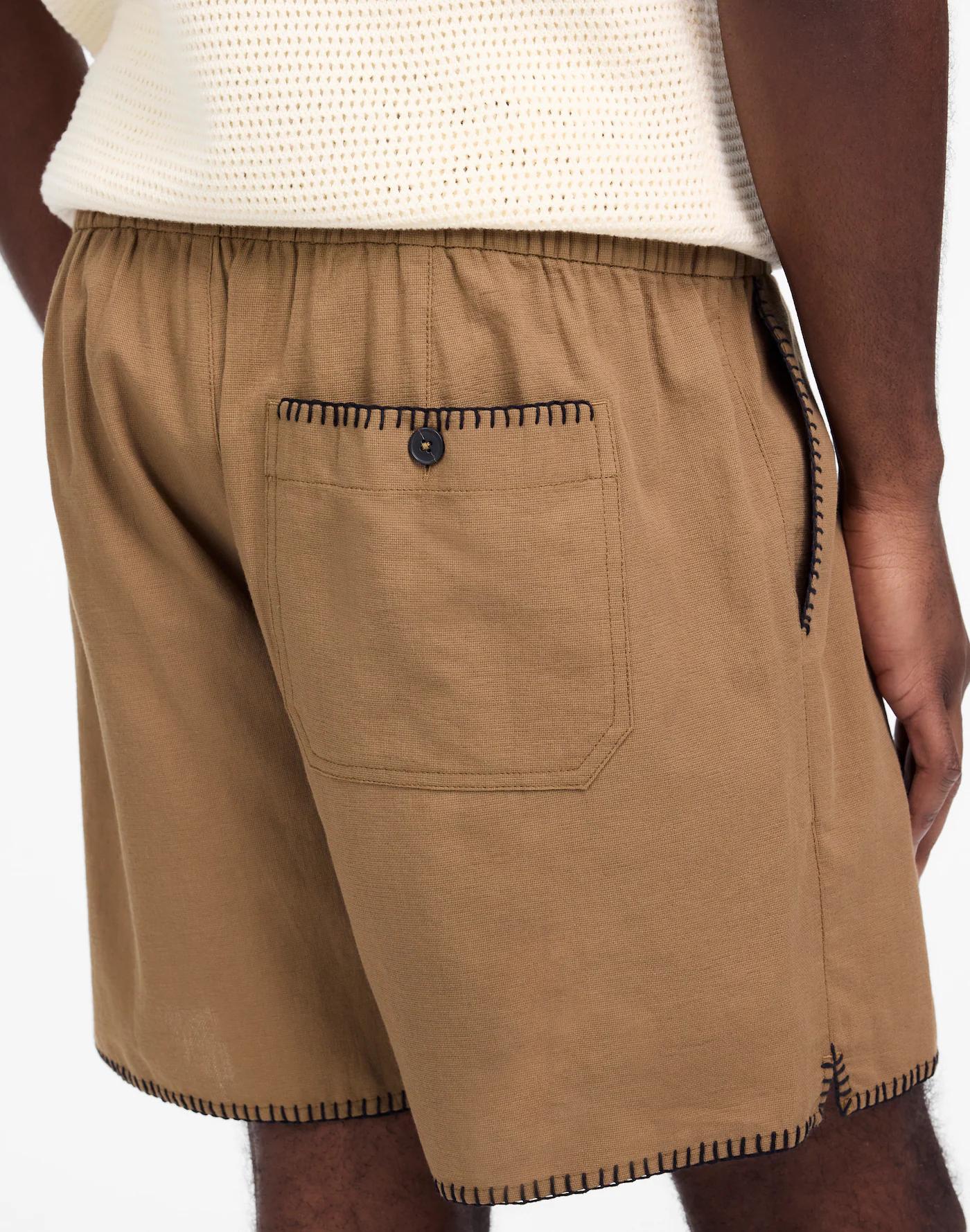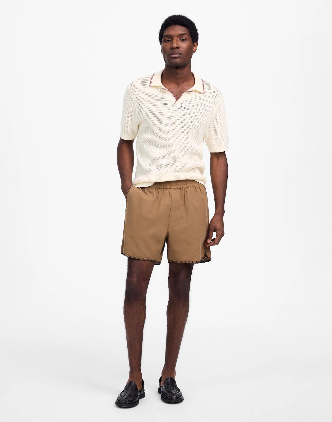 Our best-selling shorts are back in 100% cotton, complete with a comfortable elastic waistband, tonal drawstring and contrast blanket stitching throughout. Pair it with our Blanket Stitch Short-Sleeve Shirt to make it a set.