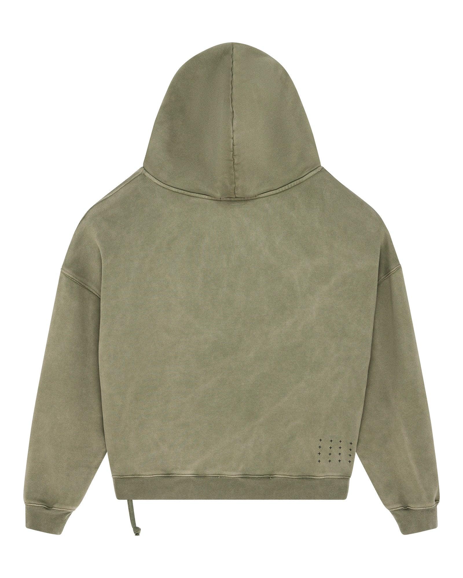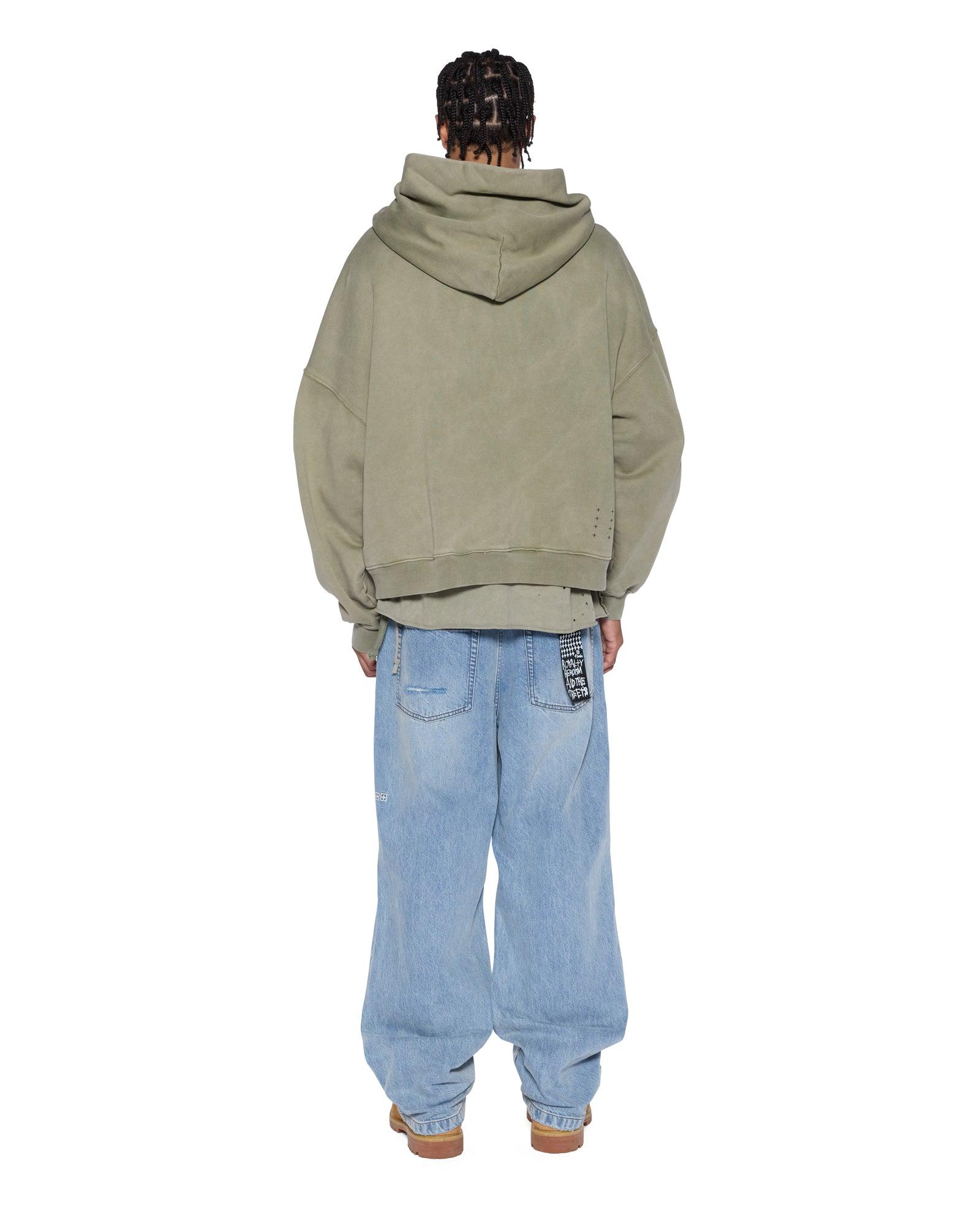 The Blasted Ekcess Hoodie Outback is a boxy oversized fit hoodie with a single-piece hood, front pouch pocket, and rats tail detail. Made from European loopback fleece in the Outback colourway, it features the Sign of the Times logo print paired with seasonal scatter deconstruction on the front and back, finished with tonal T-box and 4x4 embroidery branding.