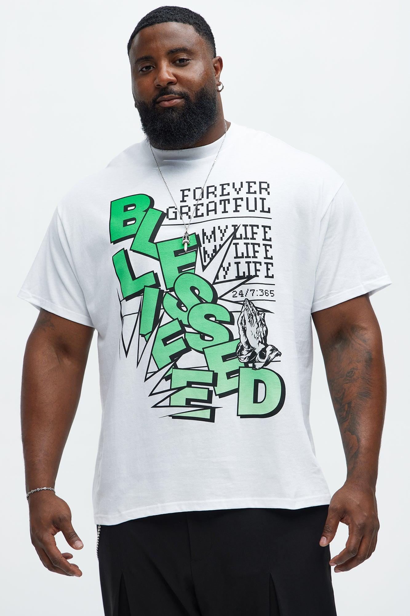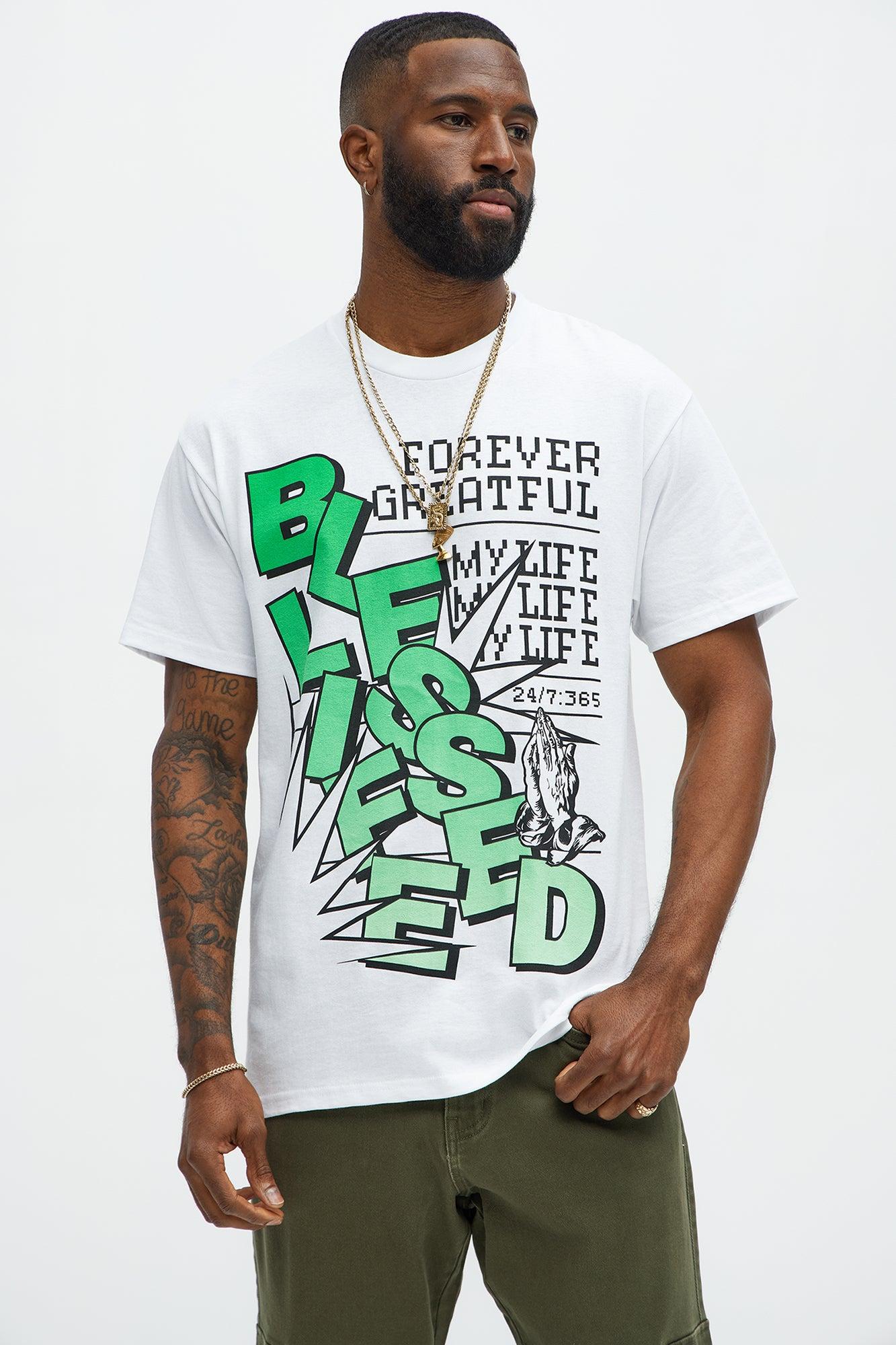 Men's God S Blessings Alphabet Slogan Print Cotton T-Shirt