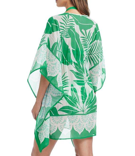 From Bleu Rod Beattie, this swim cover-up features: Chiffon fabrication Caftan silhouette Floral print V-neckline Short sleeves Adjustable tie waist string Flutter hemline Pullover construction Approx. 34" length Polyester Hand wash Imported.