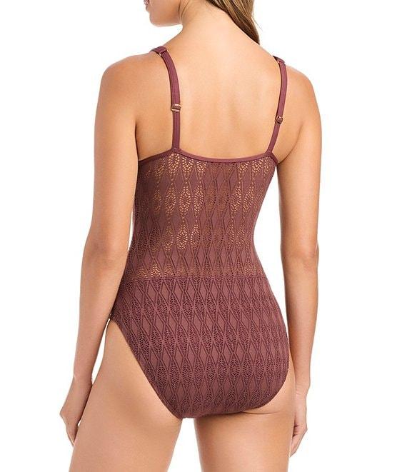 Bleu Rod Beattie Sunkissed Plunge Crochet One Piece Swimsuit