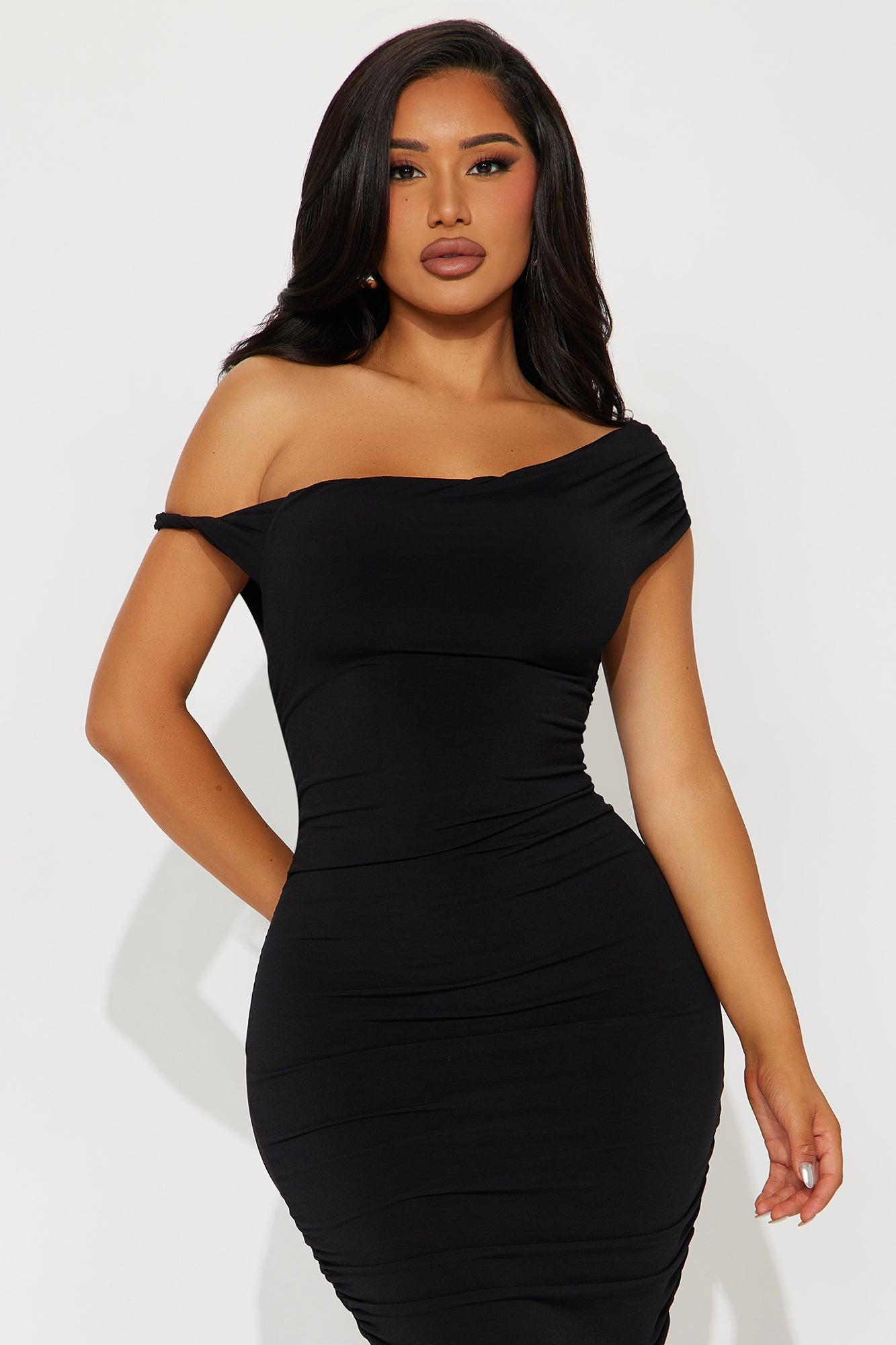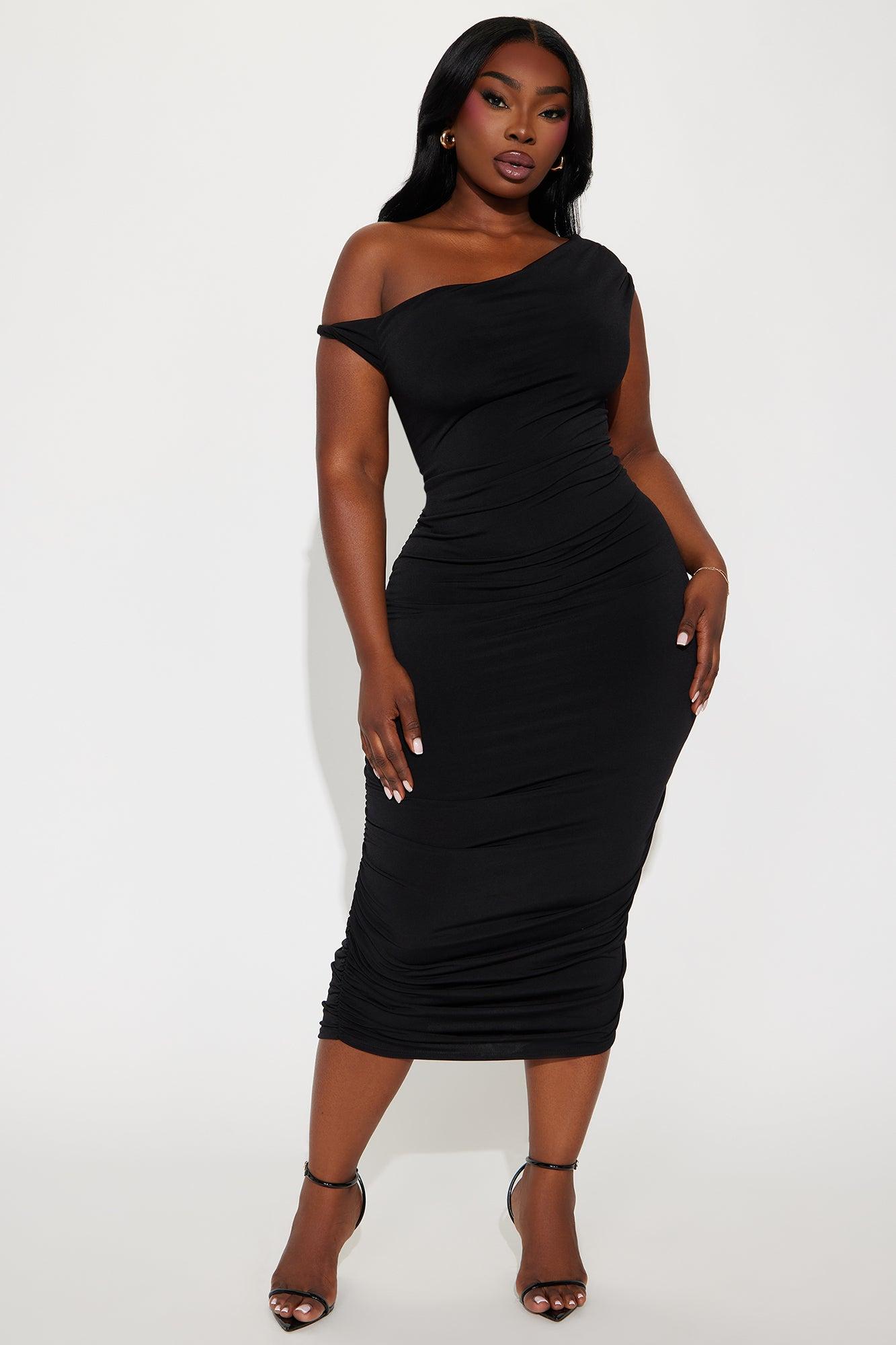 Blind Date One Shoulder Midi Dress - Black