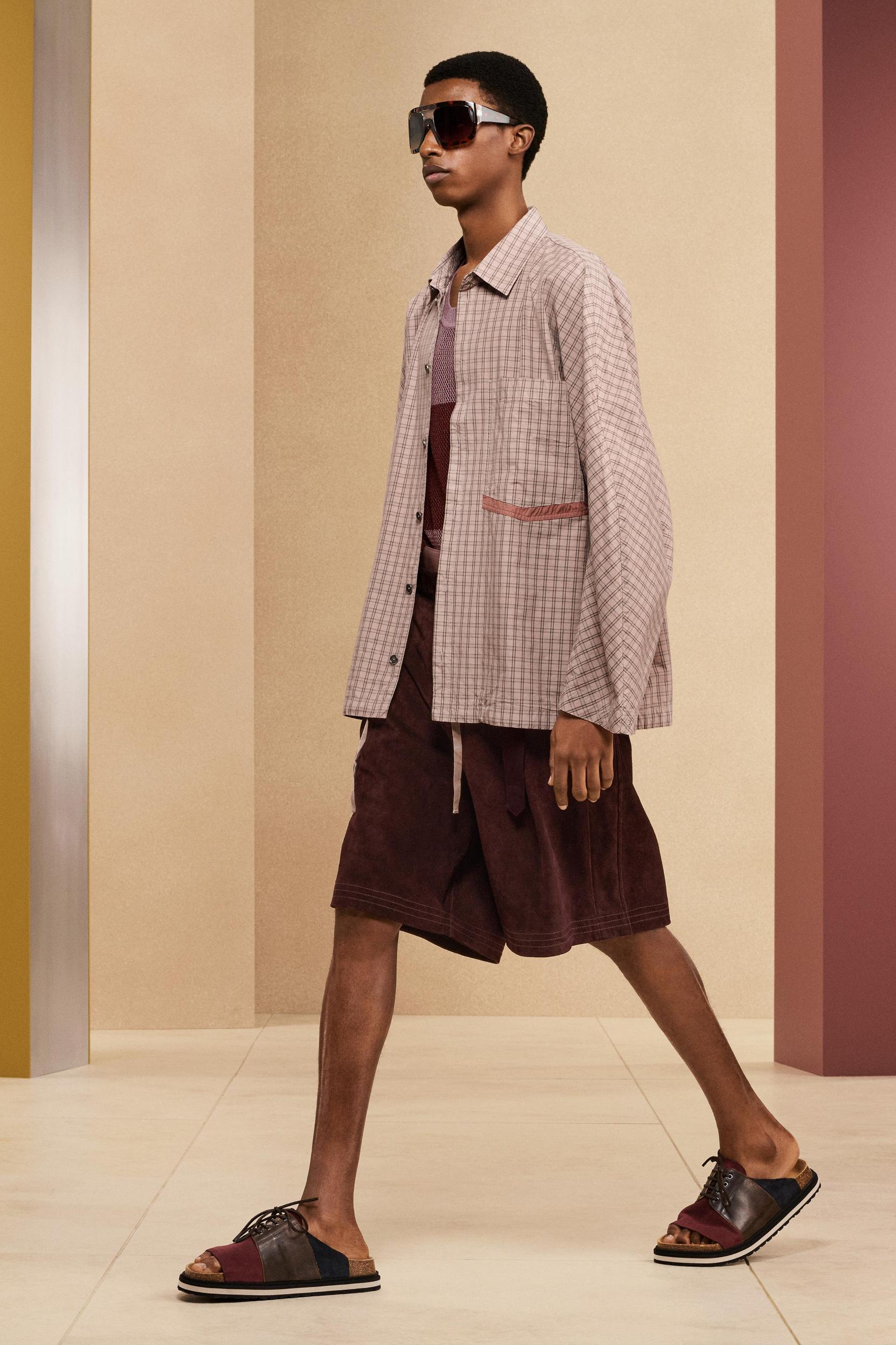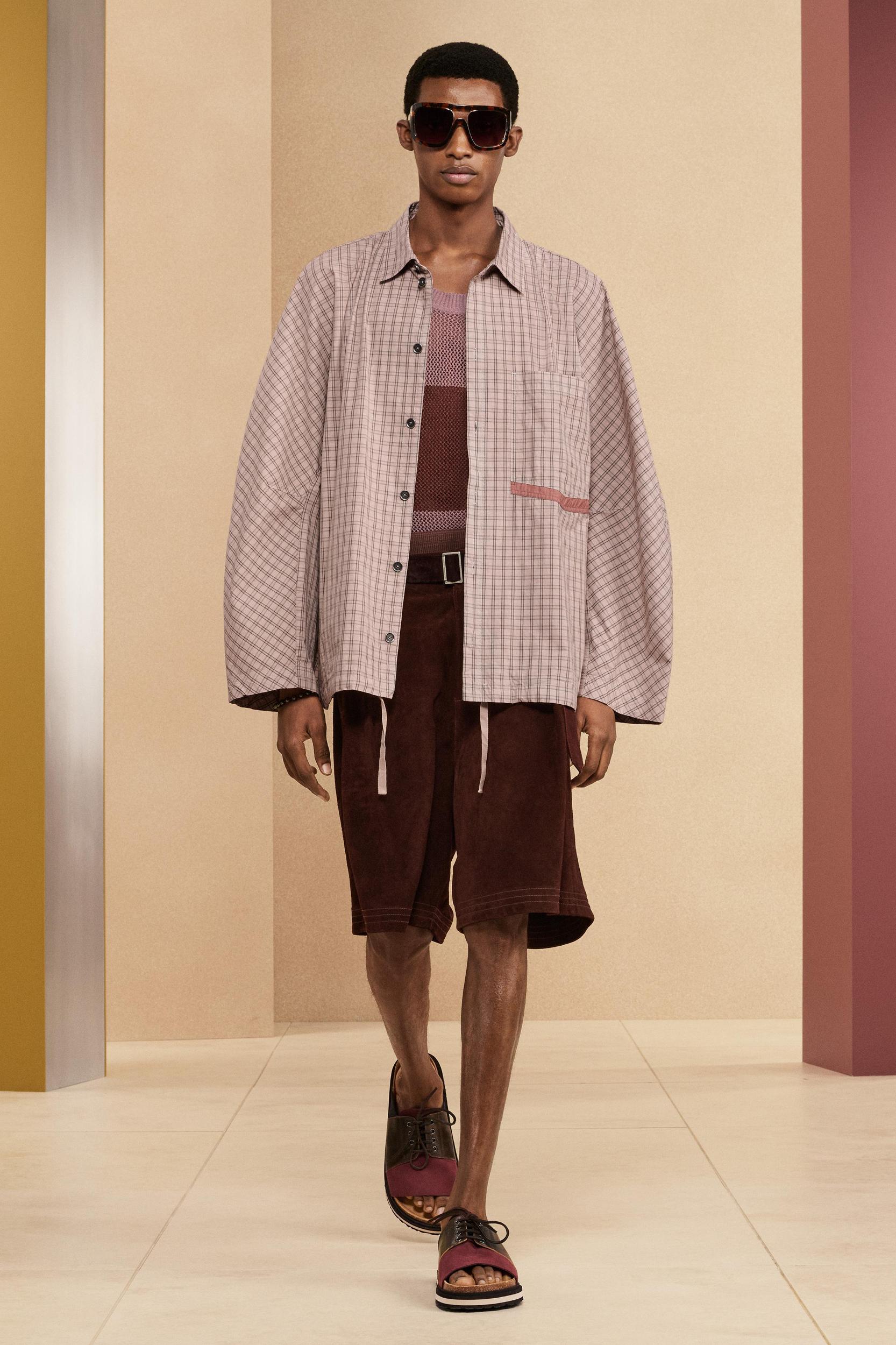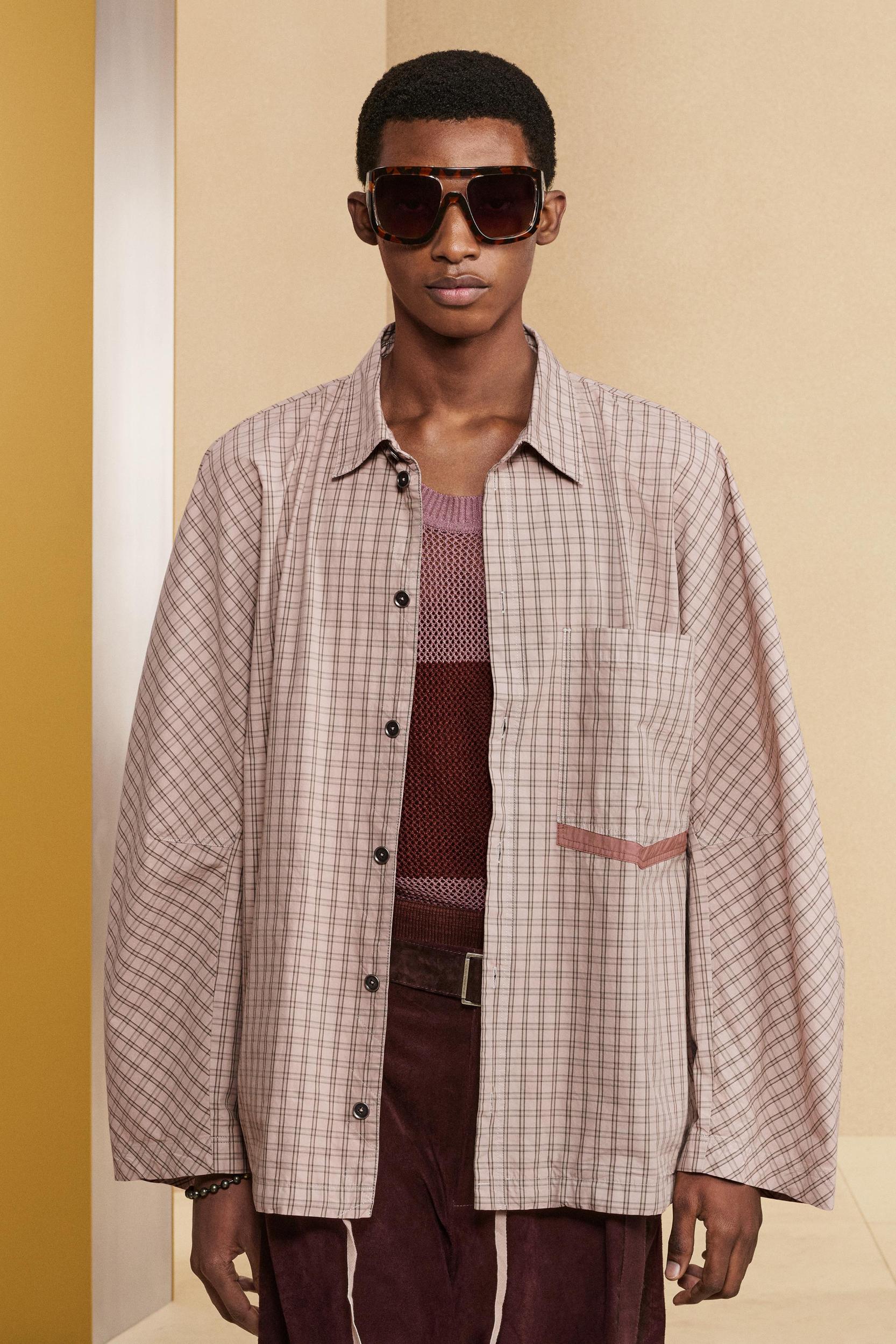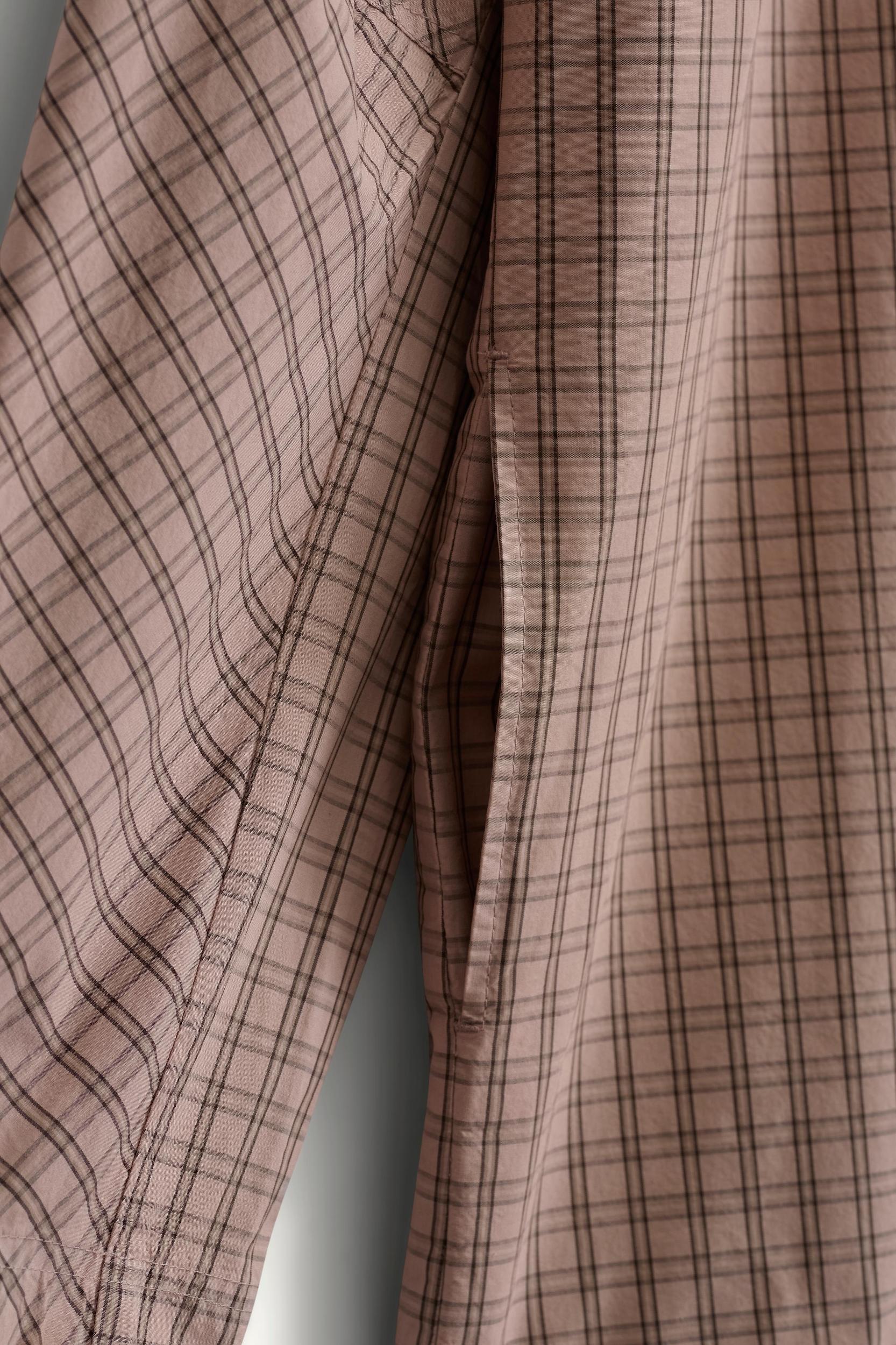 Oversized fit overshirt made in cotton blend fabric. Lapel collar and long sleeves. Patch pocket on chest. Hidden pockets in hip seam. Adjustable hem with drawstring at the front. Front button closure.