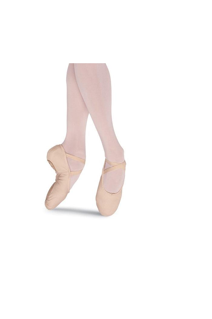 Split sole with teardrop suede pads at toe and heel to enhance arch flexibility and prevent bunching
