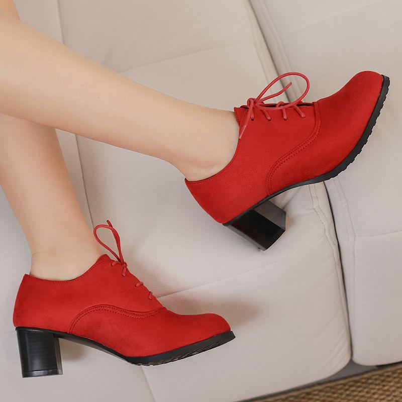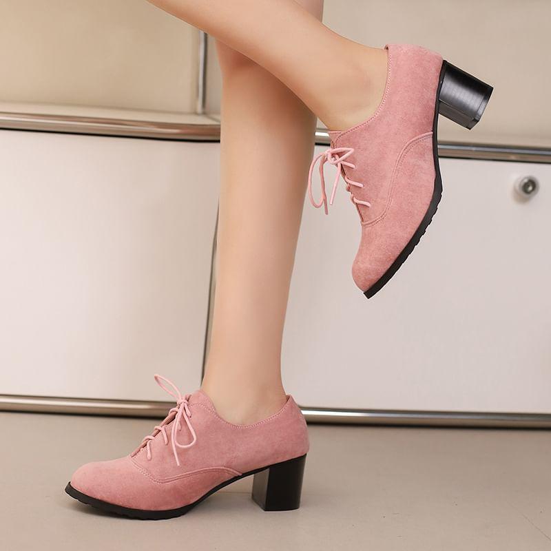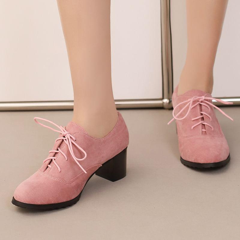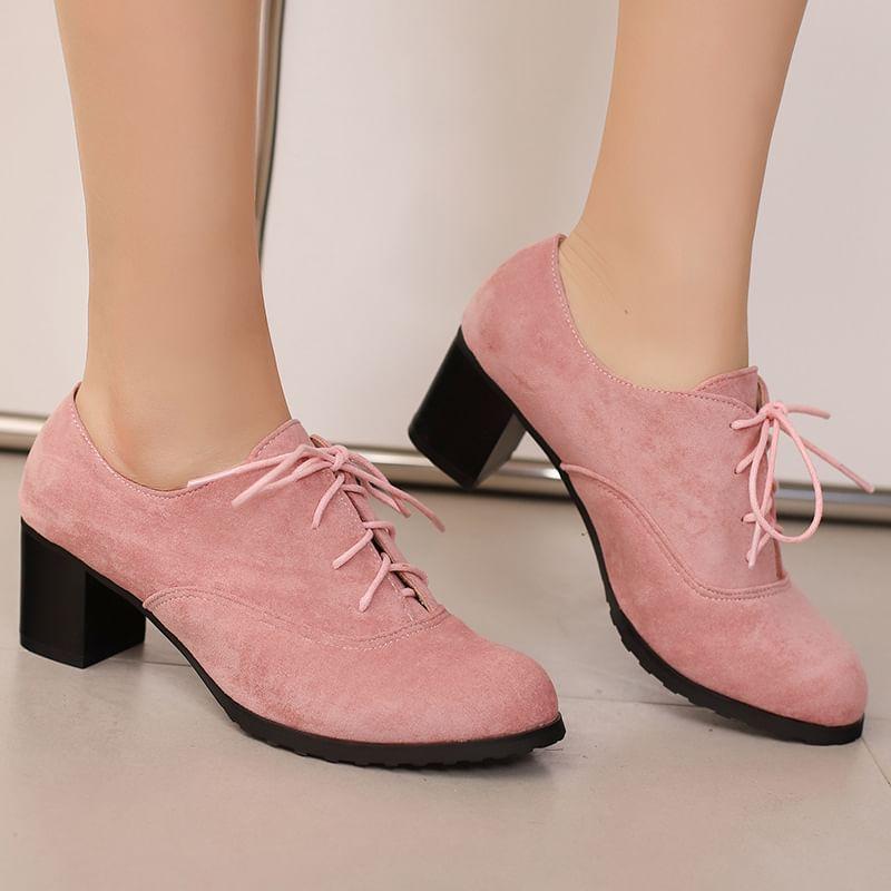 Block Heel Plain Lace Up Oxfords