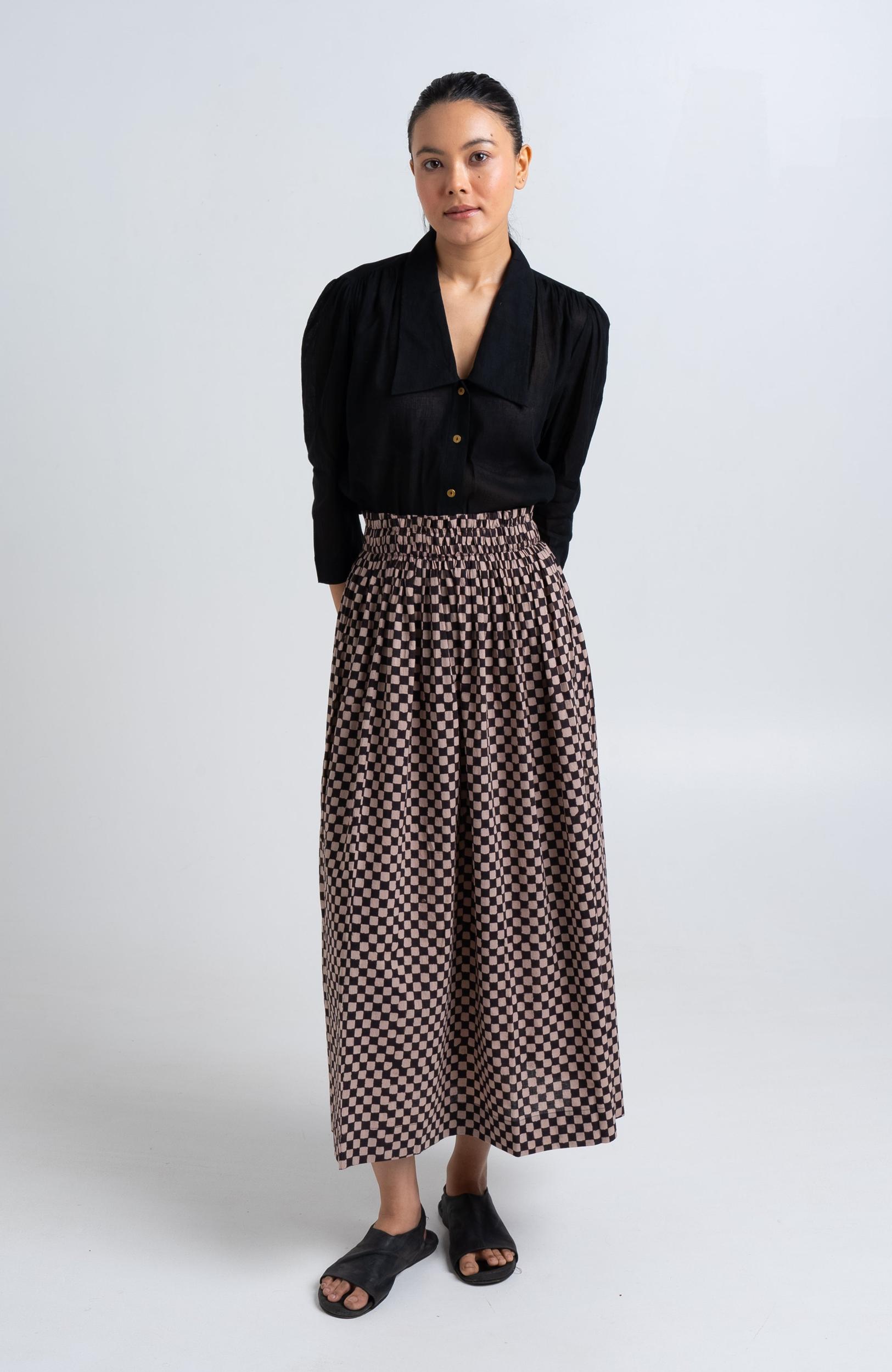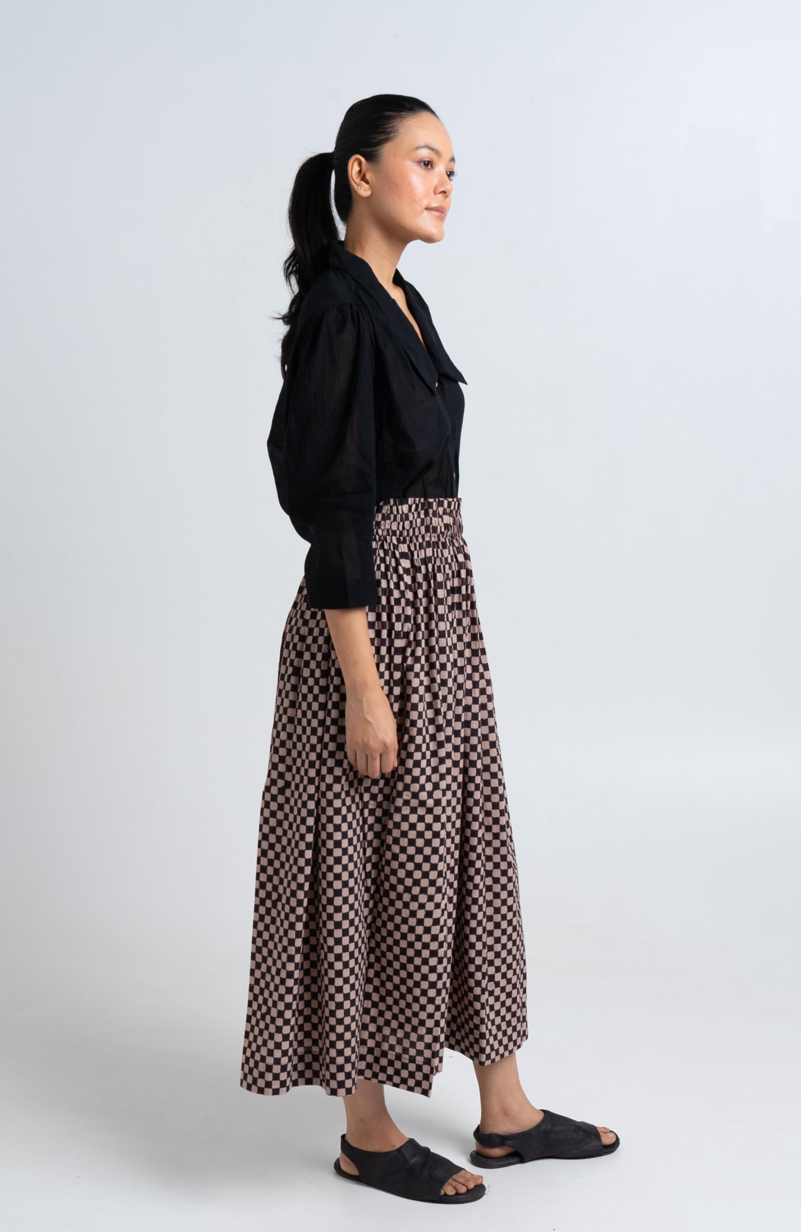 This skirt is designed in collaboration with World of Crow and Erica Kim. Keeping in mind the theme of this collection, this skirt is a timeless style with its elasticated waist for ultimate comfort, this skirt features flattering gathers that accentuate the waistline. The flowy hem gracefully falls at the mid-calf line, making it perfect for everyday wear.