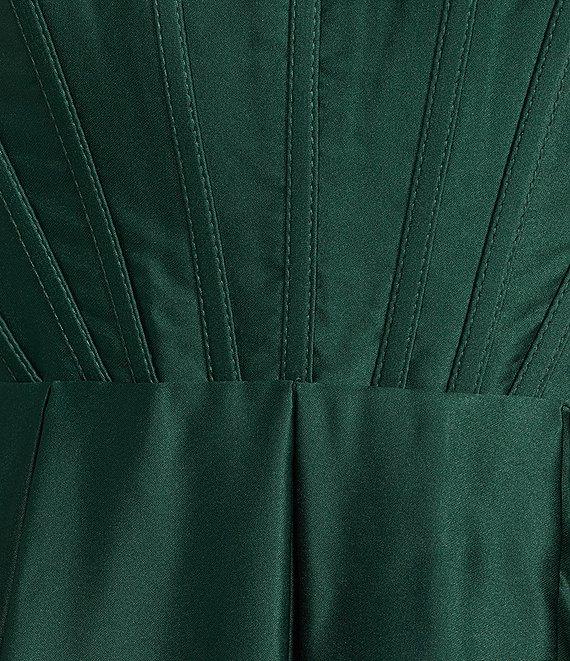 Blondie Nites Embroidered Satin Strapless Pleated Lace Up Back Ballgown