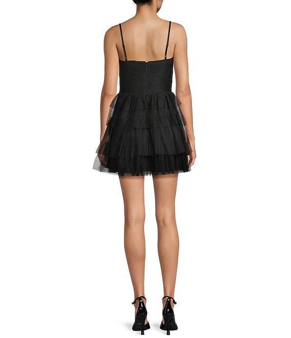 Blondie Nites Mesh Bow Front Cutout Tiered Party Dress