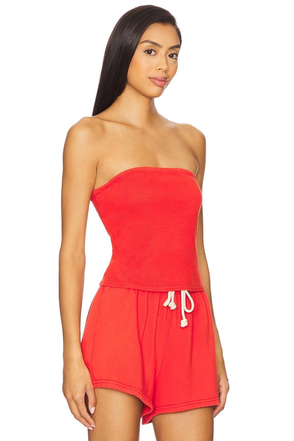 95% cotton, 5% spandex. Hand wash. Pull-on styling. Built-in shelf bra. Non-stick silicone grip trim at bust. Cropped styling. Midweight ribbed jersey fabric. Made in US. Revolve Style No. PFEC-WS67. Manufacturer Style No. T44-TALULA-P117-A1.