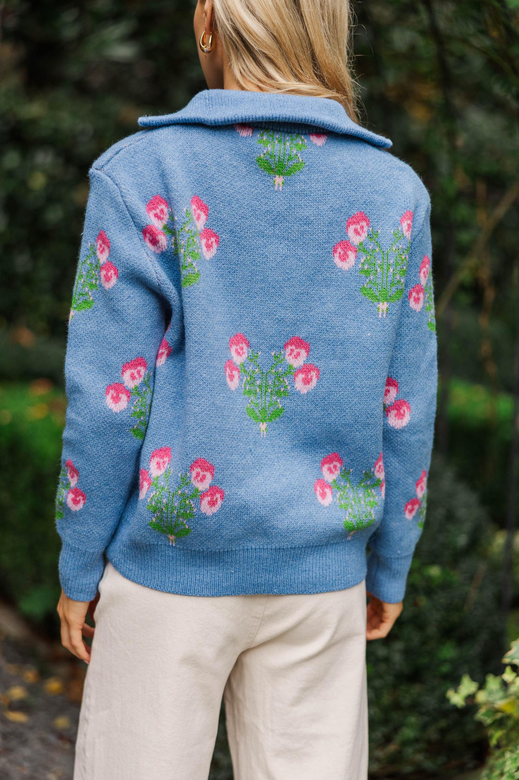 This cozy sweater adds a playful pop with its charming floral knit and relaxed, easy-to-wear fit. The half-zip neckline gives it a sporty-meets-feminine feel, making it perfect for layering or wearing on its own. Pair it with denim or trousers for a look that’s both comfy and effortlessly cute. Half-zip neckline Long sleeves Straight hemline Soft knit fabric Moderate stretch Poppy is wearing the small.
