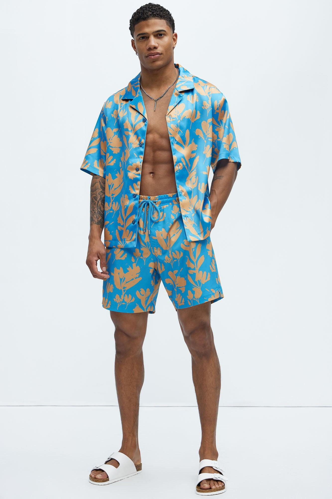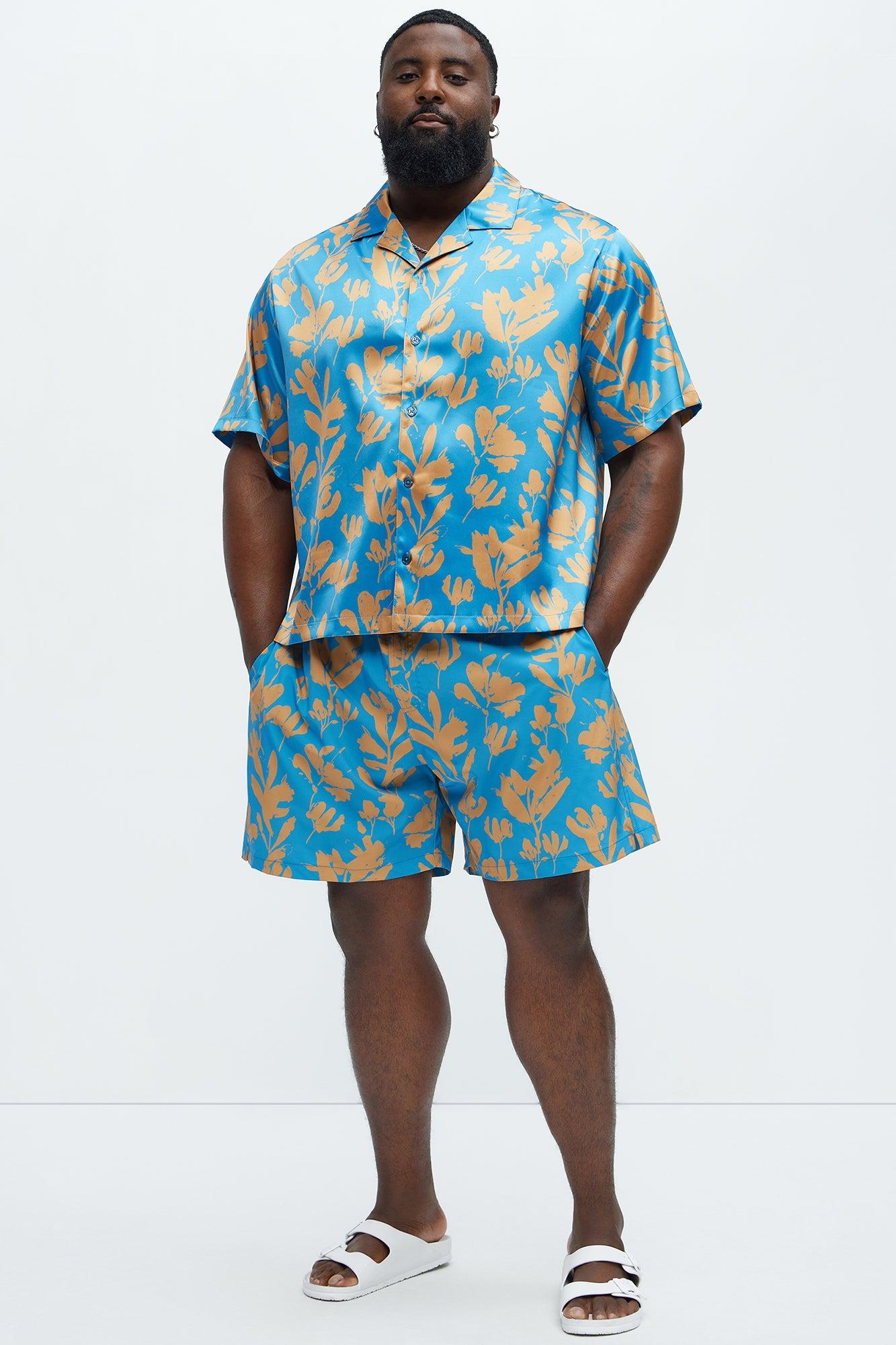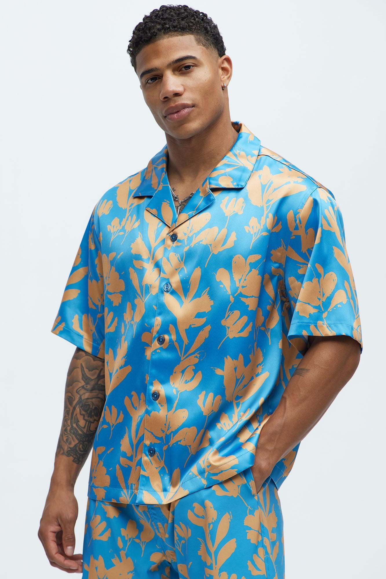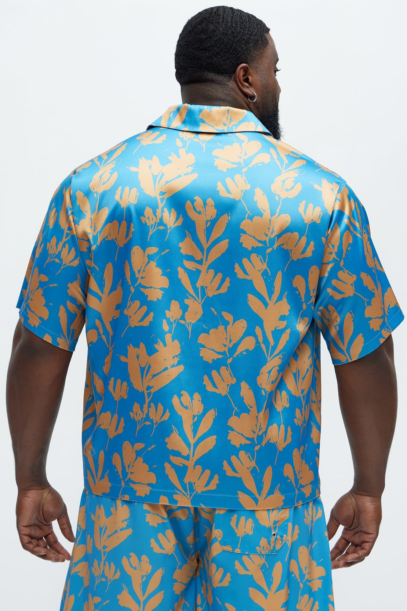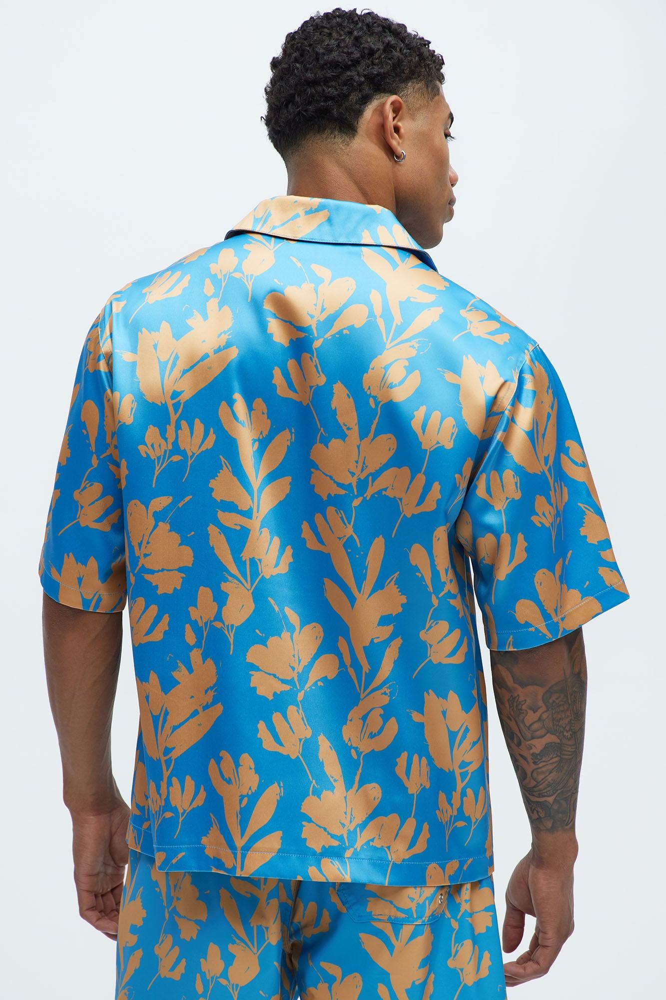 Bloom Off Printed Cuban Collar Shirt - Blue/combo