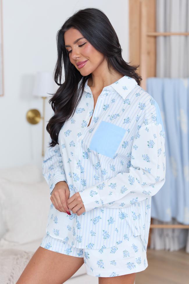 Stripes & Floral Mixed Cotton Poplin Shirt