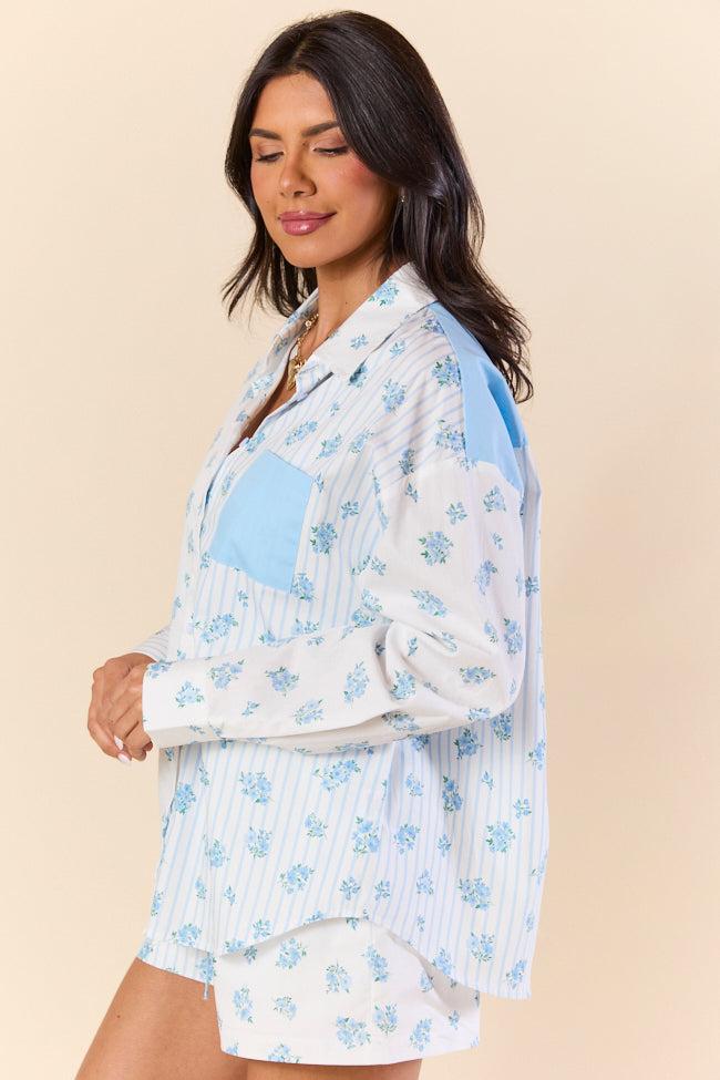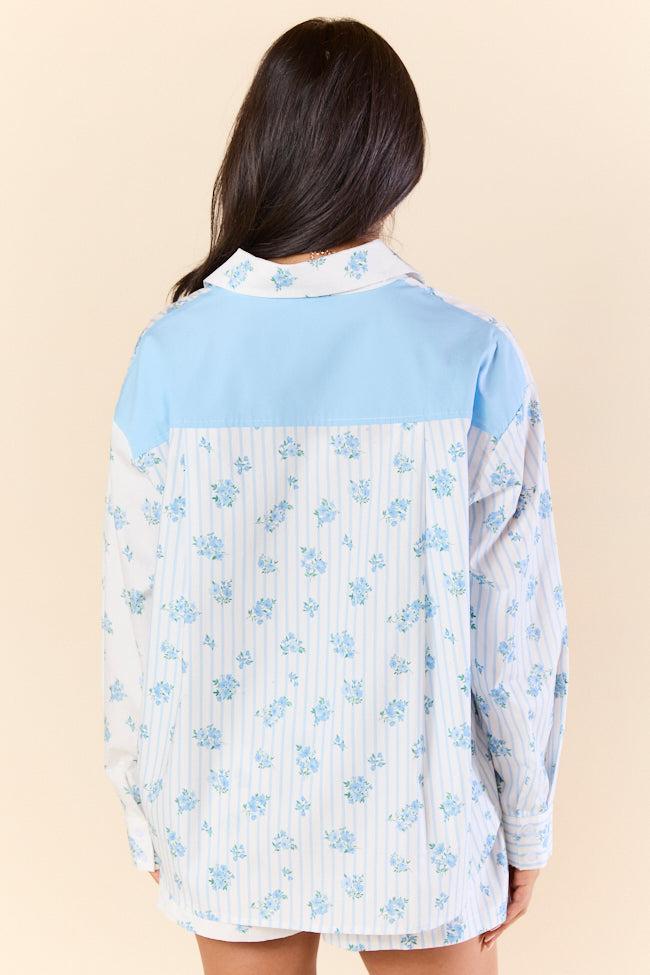 Stripes & Floral Mixed Cotton Poplin Shirt