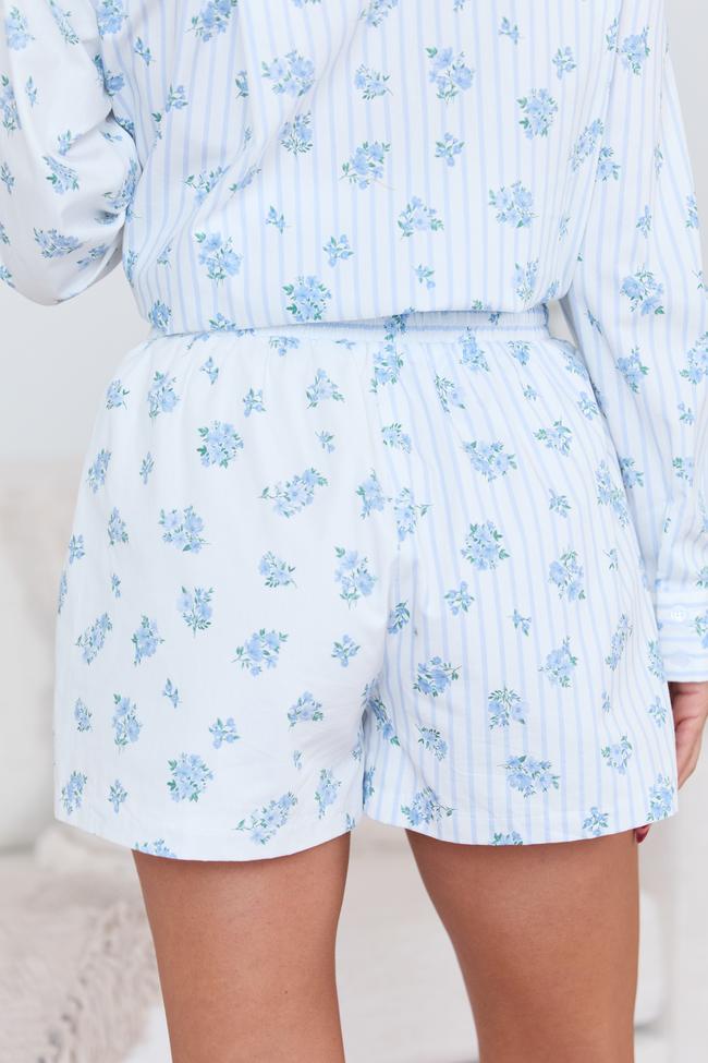 Stripes & Floral Mixed Cotton Poplin Shorts