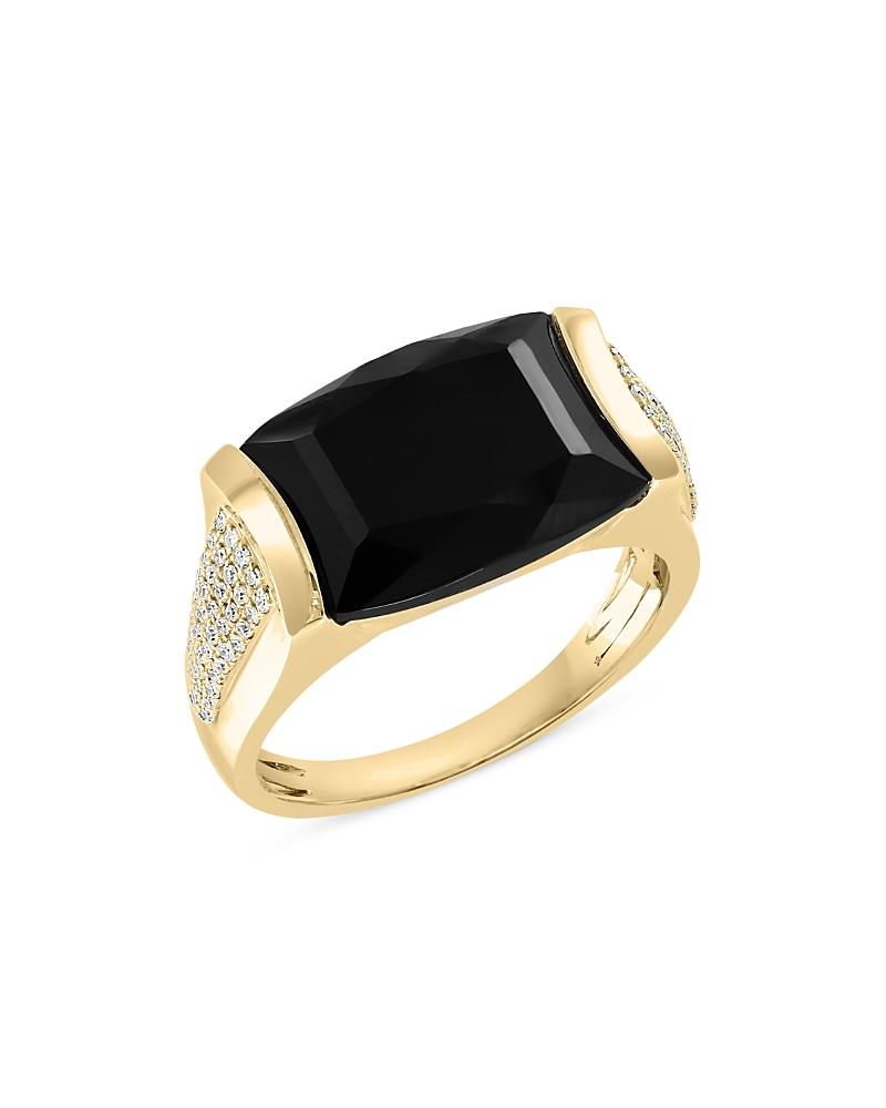 Bloomingdales Fine Collection Mens Onyx & Diamond Ring in 14K Yellow Gold
