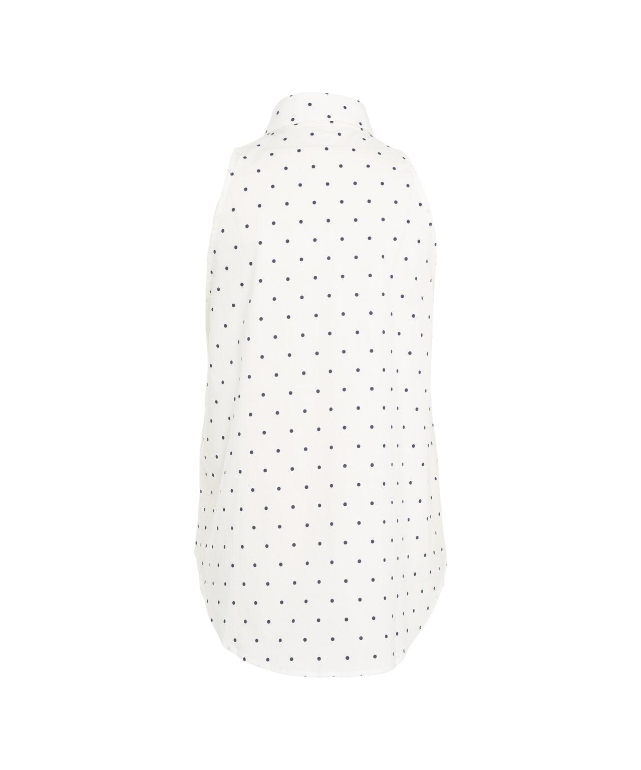 Rounded hemBust dartsKent collarConcealed button closureSleevelessPolka dots