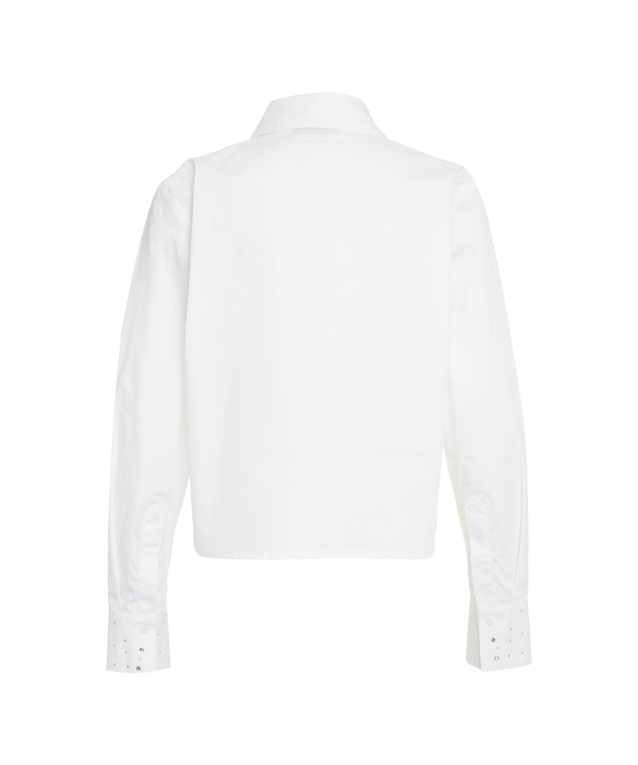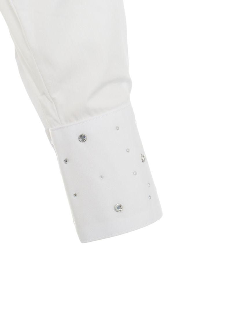 This classic blouse by Liu Jo combines timeless elegance with sparkling details. It features a classic Kent collar and wide cuffs, elaborately adorned with shiny rhinestone applications. The high-quality fabric and precise fit make it a versatile essential for stylish occasions. Made in Italy.Liu JoRhinestone applicationButton closureLong sleevesButtoned cuffsShirt style collarMade in Italy