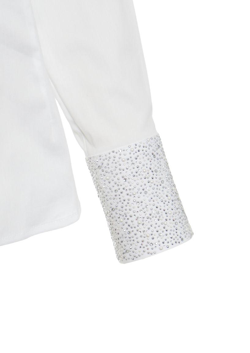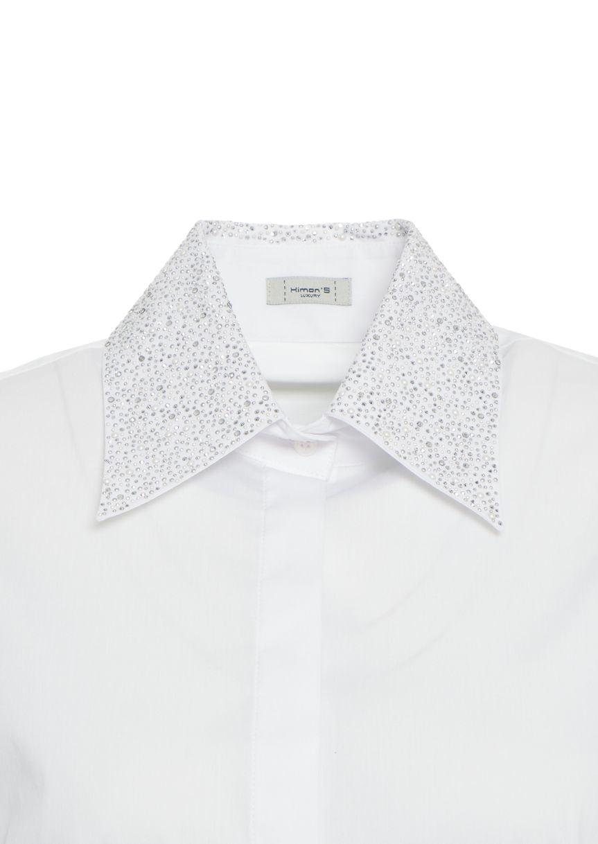 This elegant women's blouse by Himons impresses with its classic design and refined details. The high-quality shirt features a stylish shirt-like collar and buttoned cuffs, adorned with shimmering strass applications. With its long sleeves and full-length button closure, it is a versatile garment for upscale occasions or the office.HimonsStrass applicationLong sleevesButtoned cuffsButton closureShirt-like collar