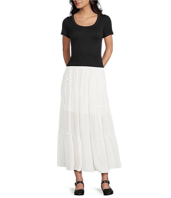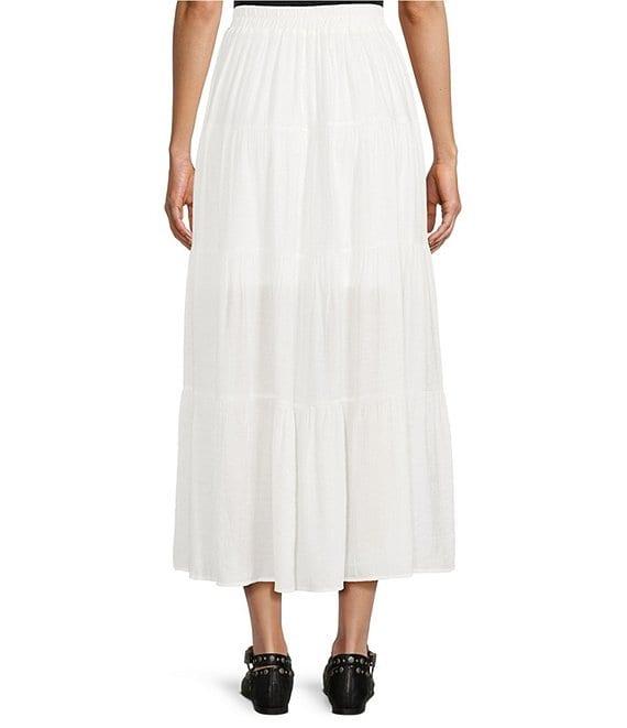 From Blu Pepper, this skirt features: High-rise Elastic waistband Pull-on styling Maxi length Bows attached Rayon/nylon/polyester Hand wash/dry flat Imported.