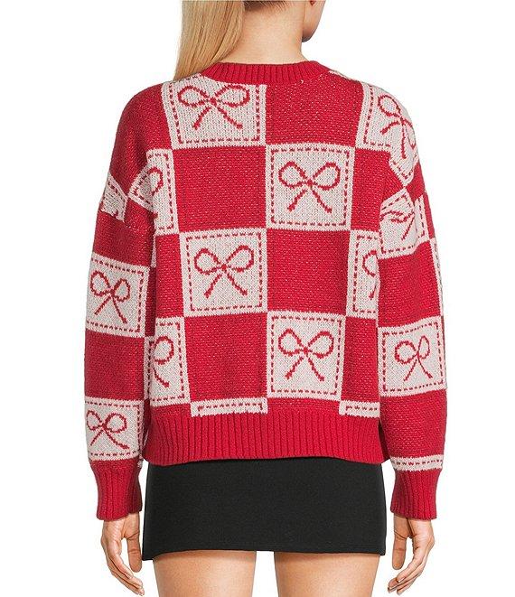 Blu Pepper Bow Print Crew Neck Long Sleeve Sweater