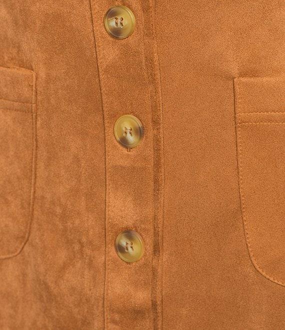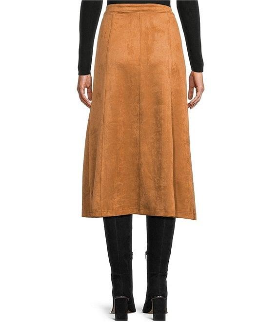 Blu Pepper Faux Suede Mid Rise Button Front Midi Skirt