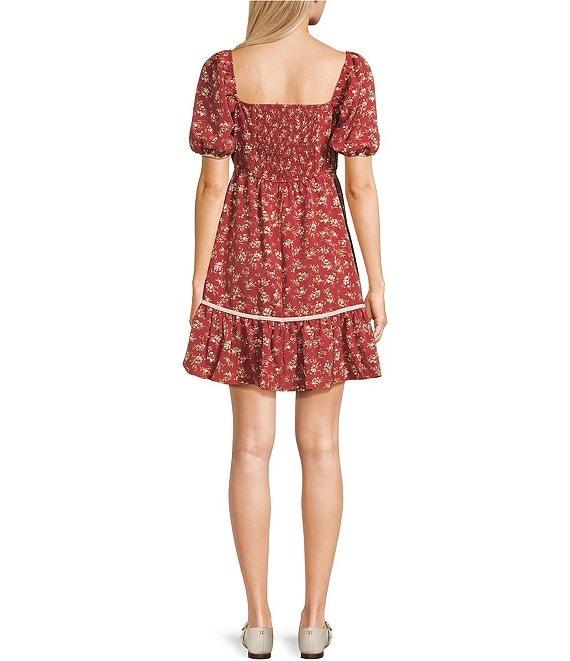 Blu Pepper Floral Print Contrast Trim Puff Sleeve Tiered Mini Dress