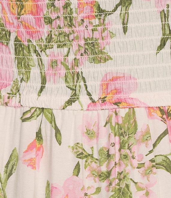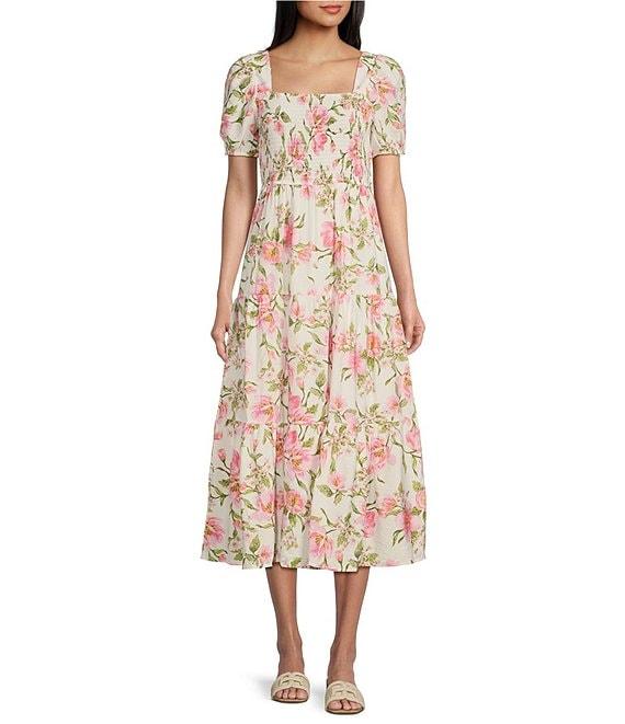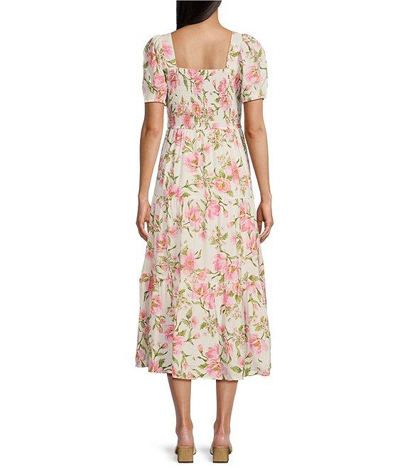 Blu Pepper Floral Print Square Neck Short Puff Sleeve Midi Dress