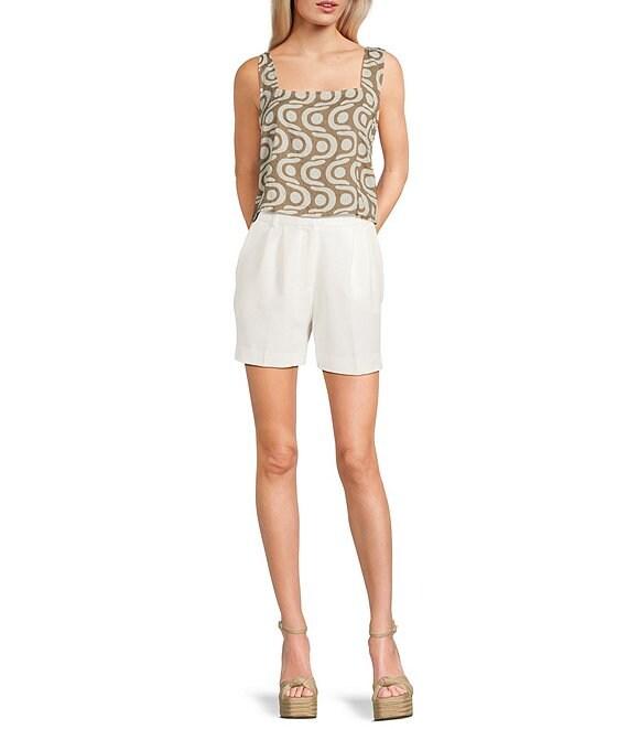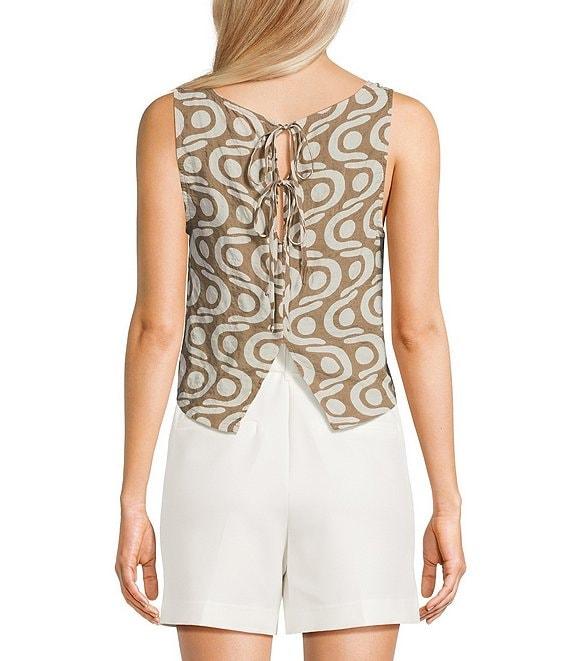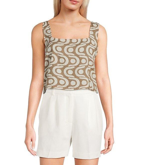 Blu Pepper Geometric Pattern Square Neck Cropped Tie Back Coordinating Tank Top
