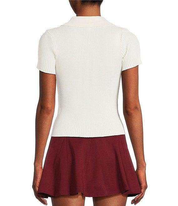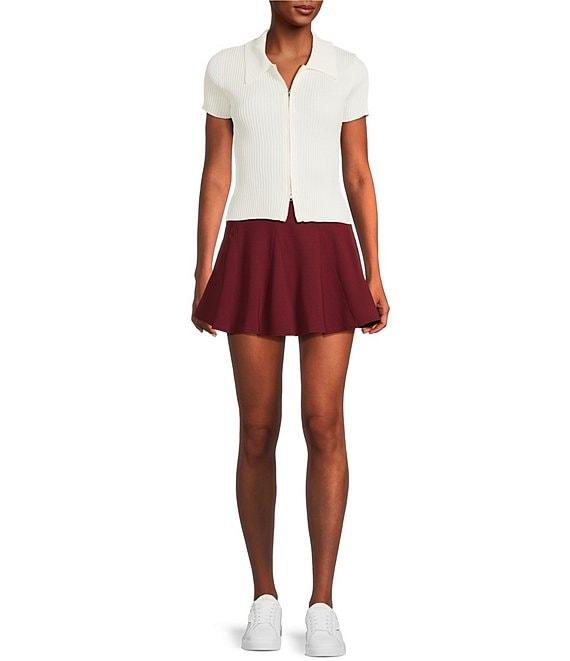 Blu Pepper Knit Collared Short Sleeve Front Zip Top