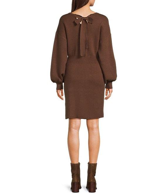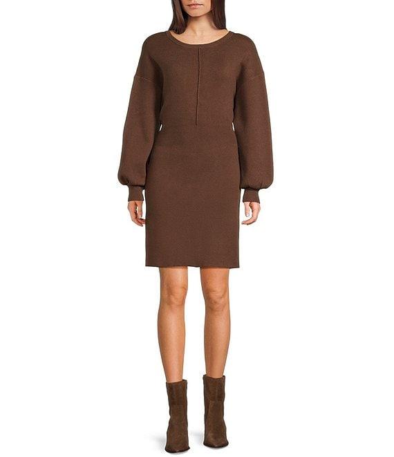 Blu Pepper Knit Crew Neck Long Sleeve Sweater Dress
