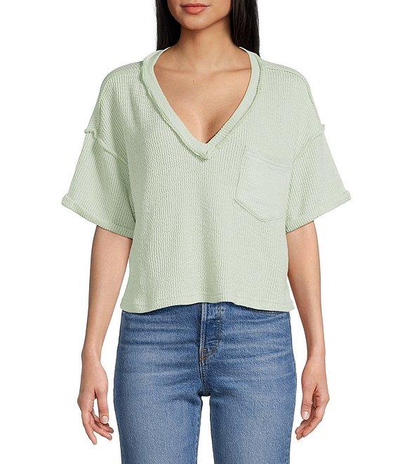 Blu Pepper Knit V-Neck Pocket Short Sleeve T-Shirt
