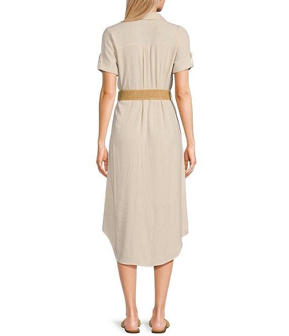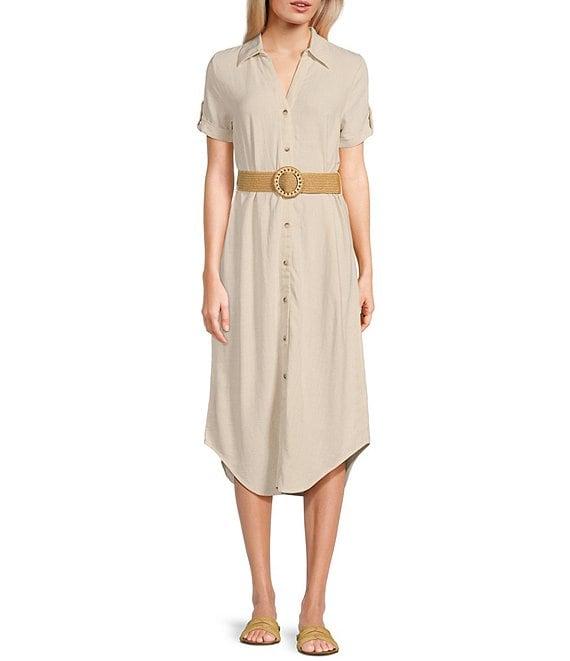 From Blu Pepper, this dress features:SolidCollared v-necklineShort sleevesButton-front closureRayon/linenHand washImported.