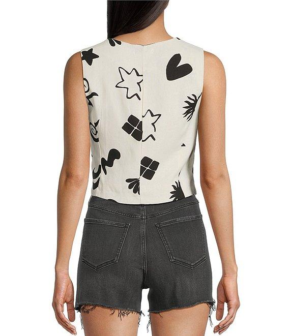 Blu Pepper Linen Blend Doodle Print Vest Top