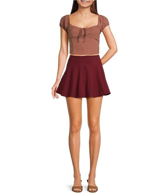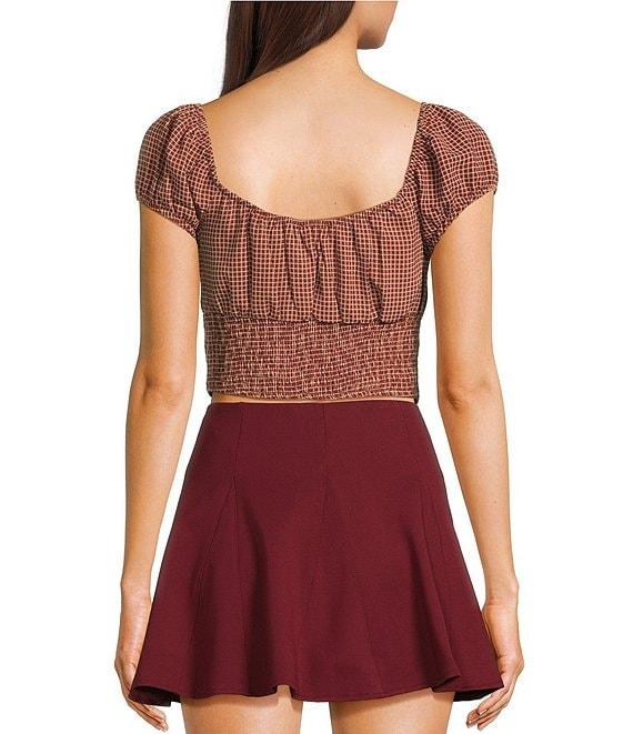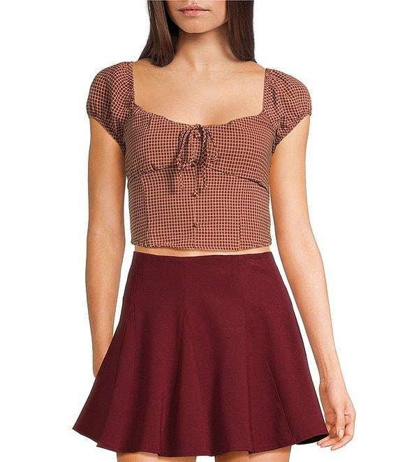 Blu Pepper Plaid Square Neck Tie Front Short Sleeve Crop Top