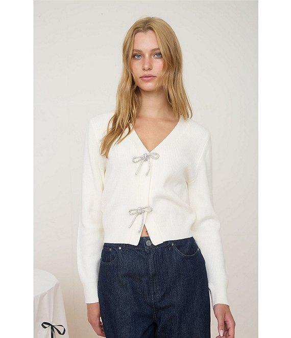 Blu Pepper Rhinestone Bow V-Neck Cardigan