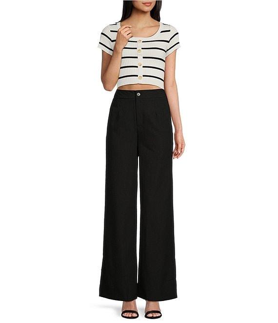 Blu Pepper Short Sleeve Stripe Fine Gauge Crop Sweater Top
