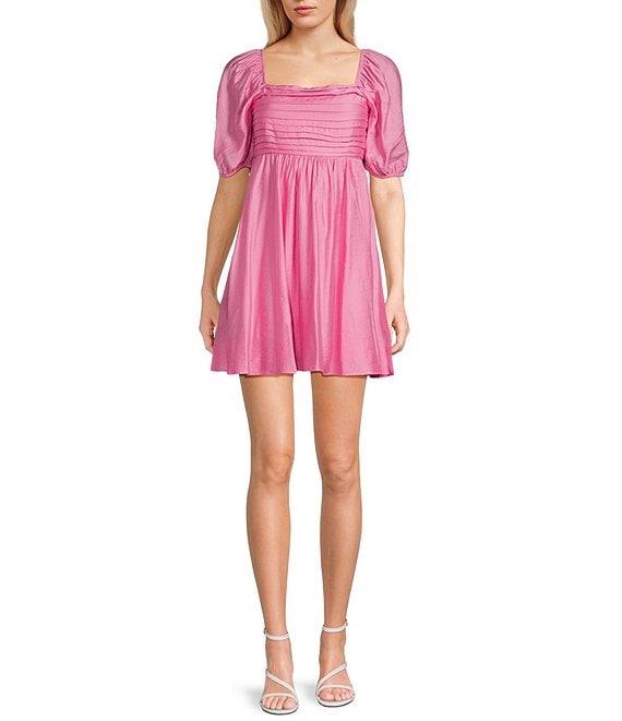 Blu Pepper Square Neck Short Puff Sleeve A-Line Dress