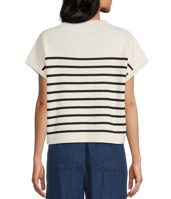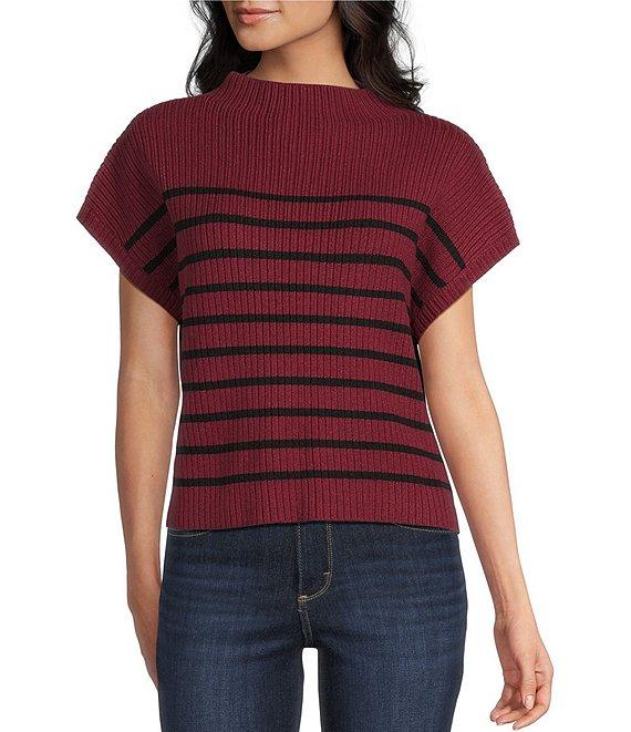 Blu Pepper Striped Mock Neck Dolman Short Sleeve Sweater