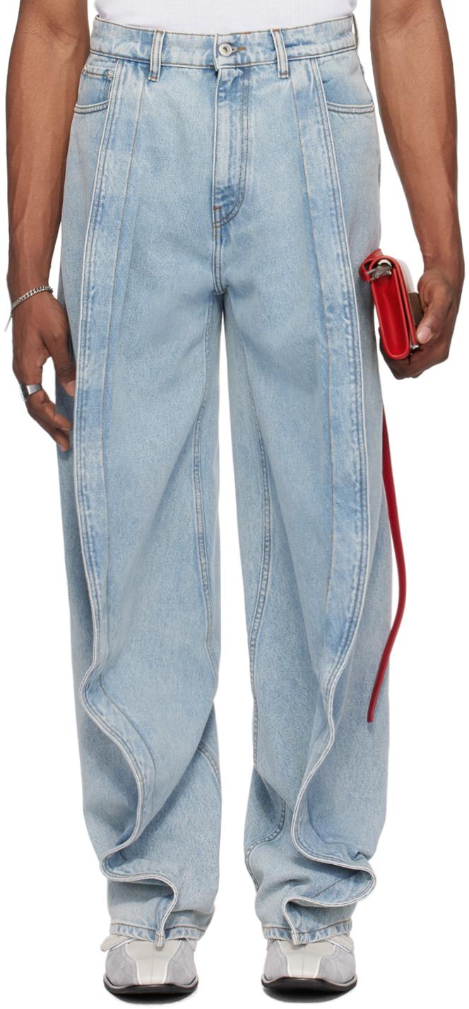 Wide-leg non-stretch organic cotton denim jeans. Fading throughout.