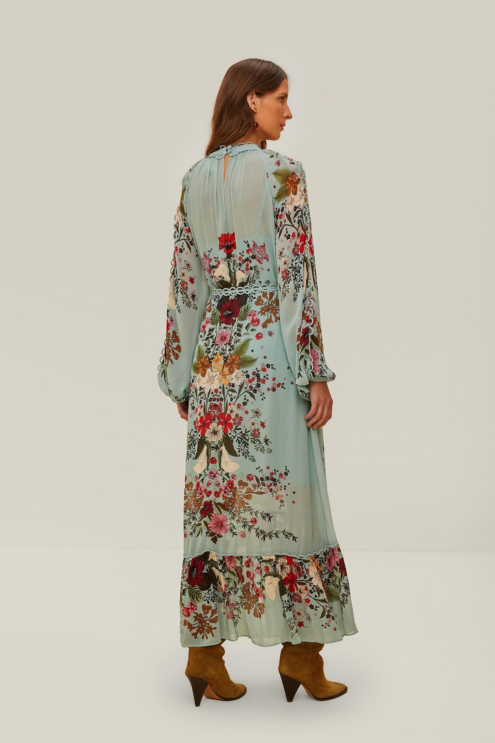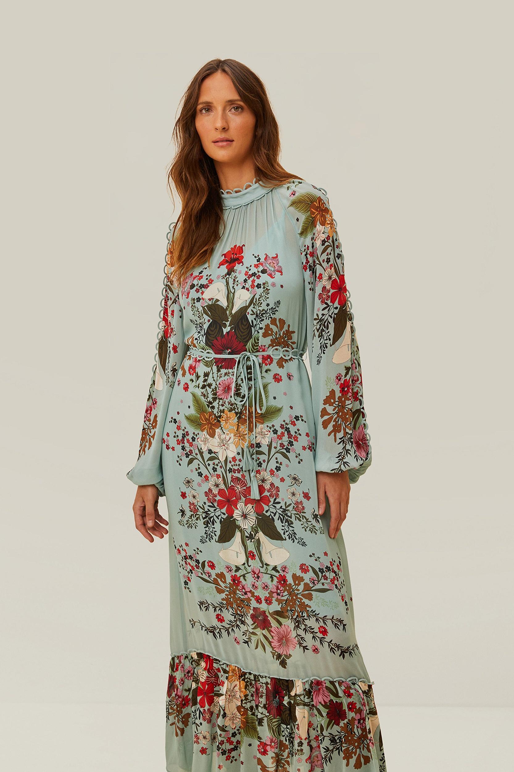 Step into a garden of elegance with the FARM Rio Blue Beauty Bouquet Long Sleeve Maxi Dress. Its striking high neckline and long flowing sleeves create a sophisticated silhouette, while the bold blue hue and delicate floral pattern add a touch of playful charm. The unique cut and subtle ruffle details elevate this dress, making it a perfect choice for any special occasion. Embrace the beauty of FARM Rio's signature style with this enchanting piece.Composition 100% VISCOSECare Instructions MACHINE WASH DELICATE CYCLE, DO NOT BLEACH, DO NOT TUMBLE DRY, LINE DRYING, IRON AT LOW HEAT, DO NOT DRY CLEANSize and Fit Inches XXS XS S M L XL Bust 35 2/4 37 2/4 39 1/4 41 1/4 44 2/4 47 3/4 Waist 36 2/4 38 2/4 40 2/4 42 2/4 45 3/4 48 3/4 Length 55 2/4 56 1/4 57 57 3/4 58 3/4 59 2/4 Hip 39 41 43 45 51 1/4 51 1/4