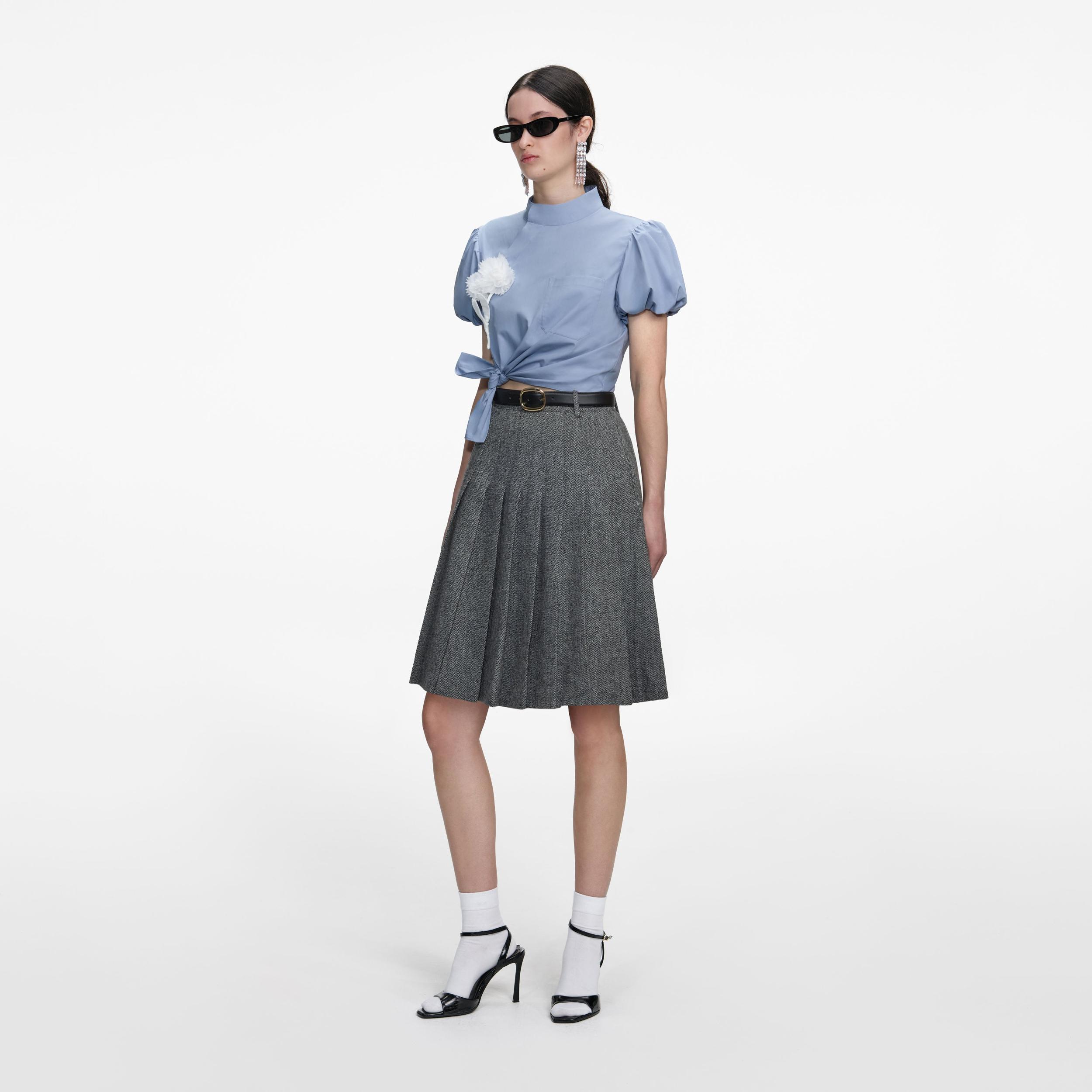 A statement bow detail spotlights the cropped fit of this cotton top. Balloon sleeves and a corsage brooch lend extra flair – style with jeans for hot dates or add our matching skirt for festivities.True to sizeRelaxed fitSnap popper closure at frontRemovable broochMatching skirt availableModel is 5ft10/178cm and wears a size UK 6