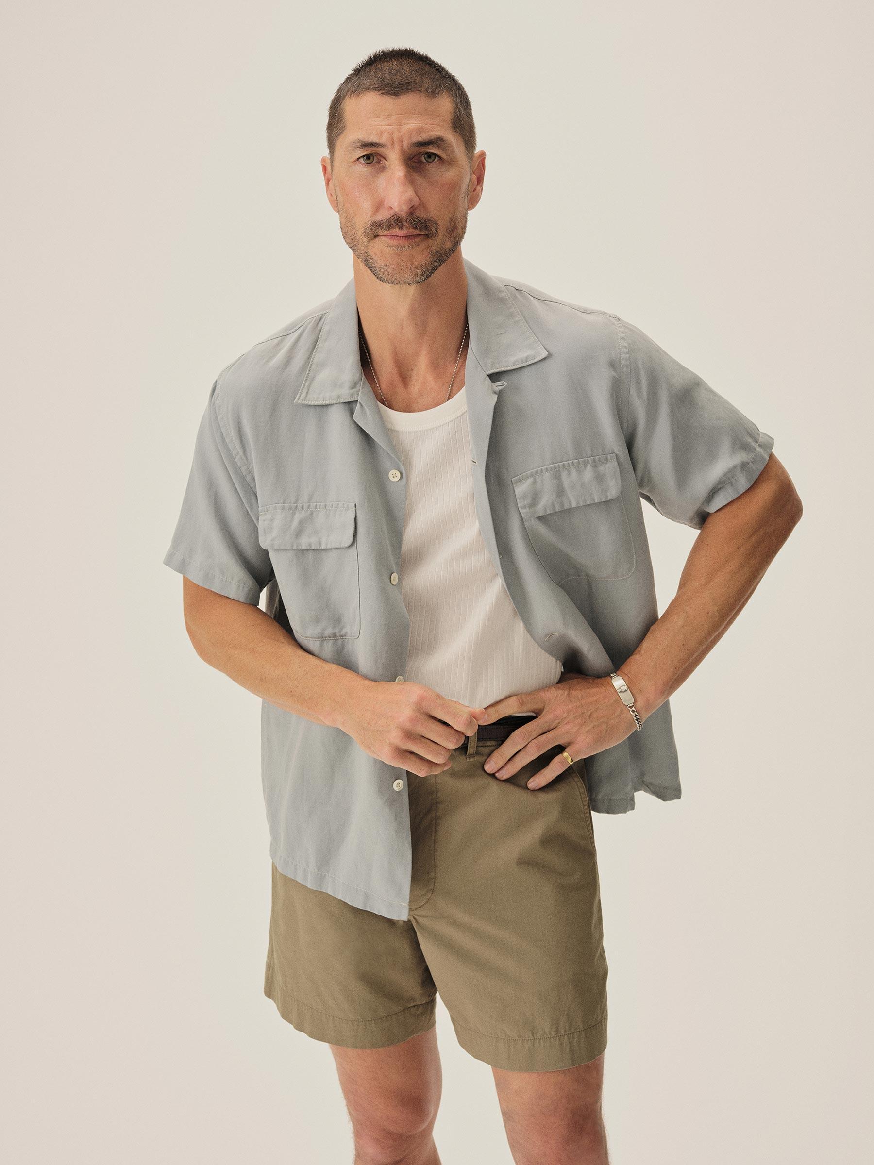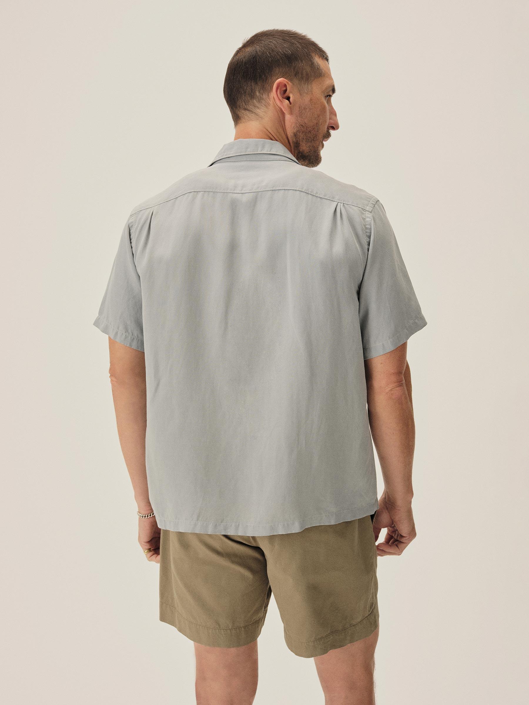 Blue Fescue Draped Linen Deuce Coupe Camp Shirt