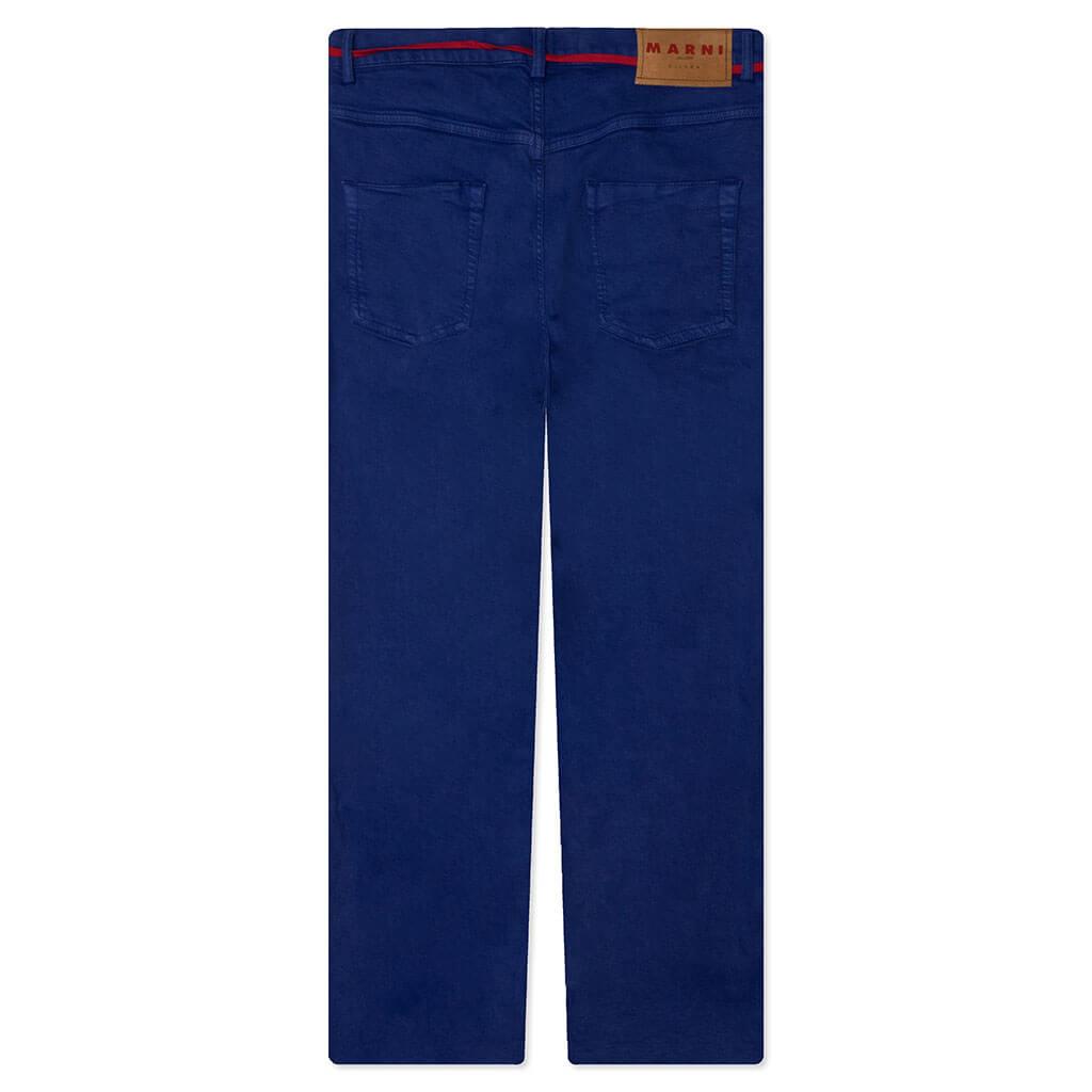 The Blue Flared 5 Pocket Trousers makes a statement in any contemporary apparel rotation. The design features a blend of cotton and elastic, while the trousers incorporate a garment-dyed aesthetic. The silhouette features belt loops along with a zip fastening. The leather logo label wraps up the remainder of the design. Cotton/elastic blend Regular fit Belt loops Zip fastening Leather logo label Flared design Style No: PUJU0019A0 USCV12 DDB59