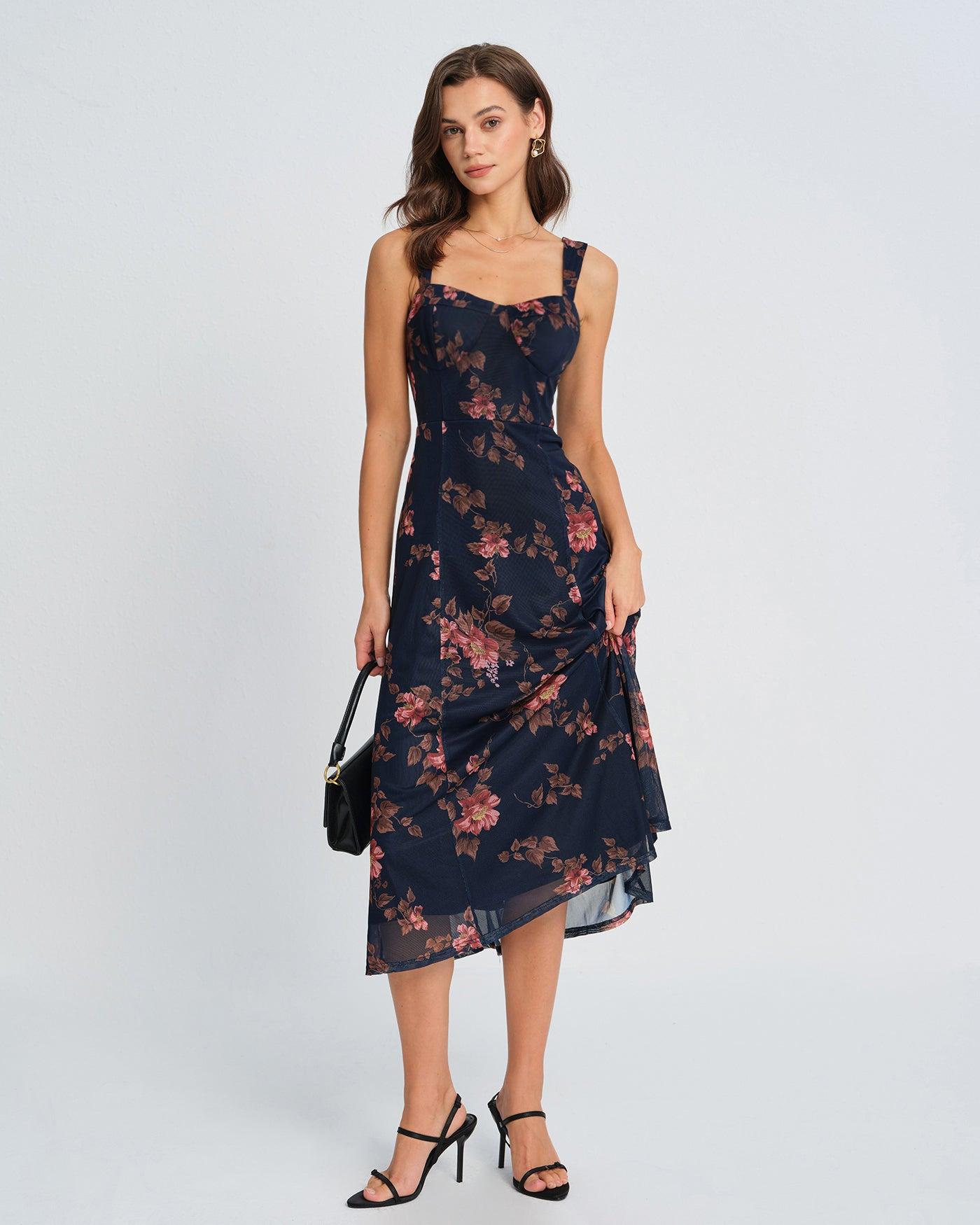 - Occasion: special occasion - Style: prom - Season: Spring, Summer - Back Neckline: Strap - Fabric Stretch: Slight Stretch - Waist: Natural Waisted - Sleeve Length: Sleeveless - Sleeve Type: Sleeveless - Pattern Type: Floral - Embellishment: Zipper - Neckline: Straps - Dress Type: Slip - Silhouette: A-Line - Fabric: Polyester 93.0%, Spandex 7.0% - Lining: Polyester 95.0%, Spandex 5.0% - Material: Knit