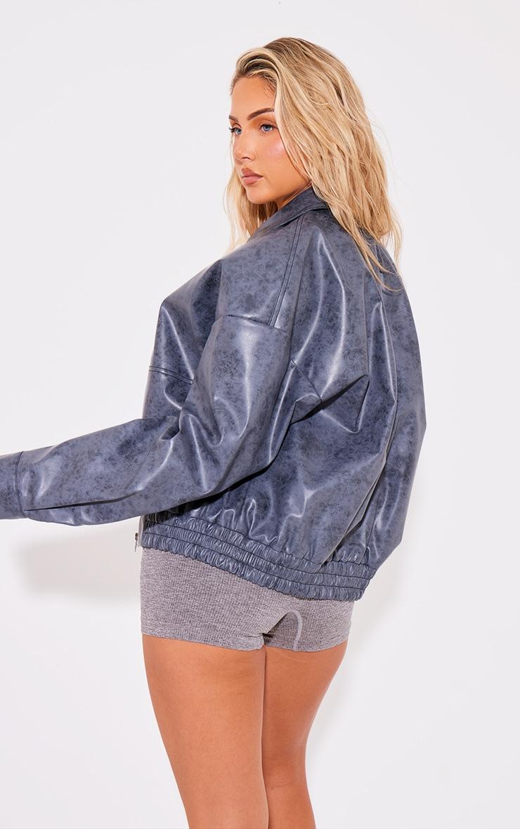 Earn some serious style points this season doll with this blue grey distressed faux leather zip up oversized jacket. Brought to you in a blue grey faux leather material with distressed detailing and a zip up fastening, this oversized jacket is a must-have. Style with mini shorts, a basic white tee, and fresh kicks for a chic off-duty look. Length approx 68.5cm/27inch (Based on a sample size UK 8) Model wears size UK 8/ EU 36/ AUS 8/ US 4Model Height - 5ft 7inchp]:!mb-4inch>Category: OuterwearProduct type: Biker JacketColor: Blue GreySleeves: LongOccasion: Day
