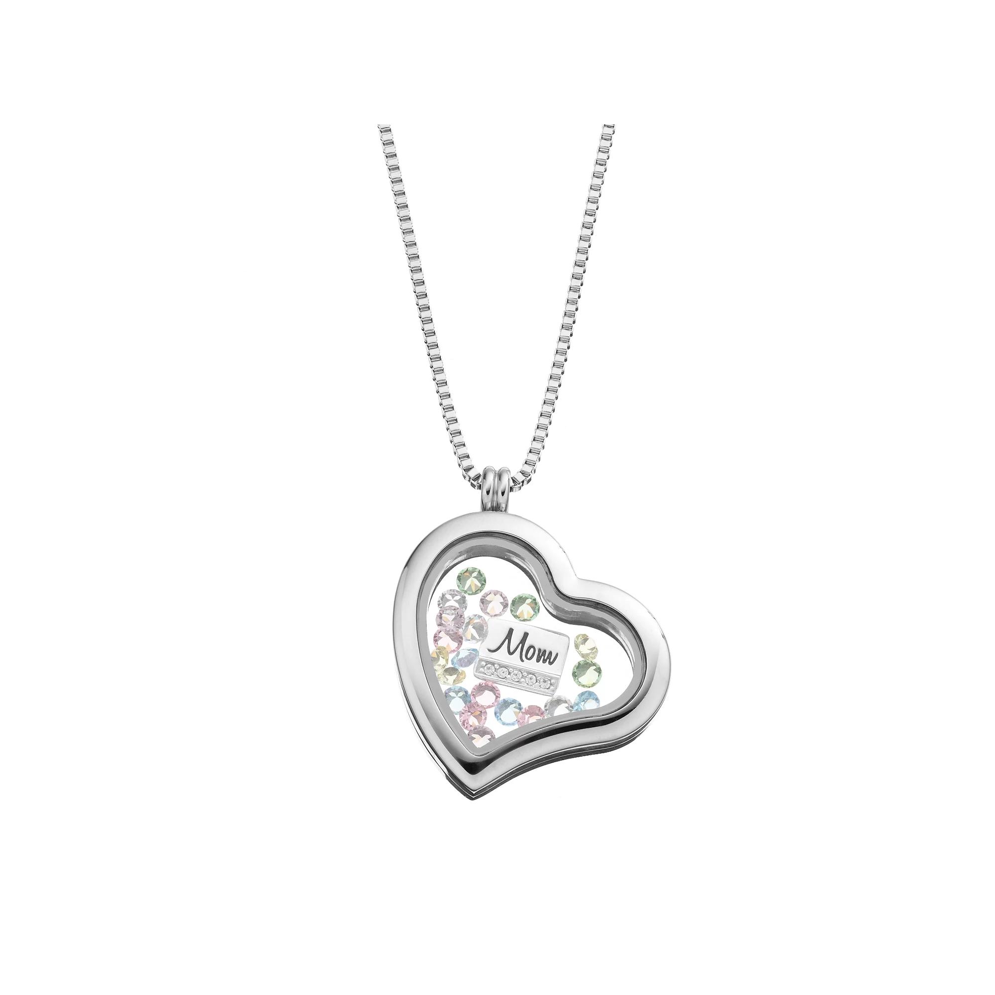 This charm locket is a beautiful way to show how much you care. Visible through its display window, loose crystals and a Mom charm make this piece a lovely choice. Customize your look by adding other Blue La Rue charms and accessories, sold separately. Comes in a gift box.Watch the product video here.LOCKET DETAILS Locket length: 1.2 in. Chain length: 18 in. Clasp: spring-ring Metal: stainless steel, silver-plated brass charm Inscription: Mom Features: box chain Made with Swarovski Crystals Size: One Size. Color: White. Gender: female. Age Group: adult.