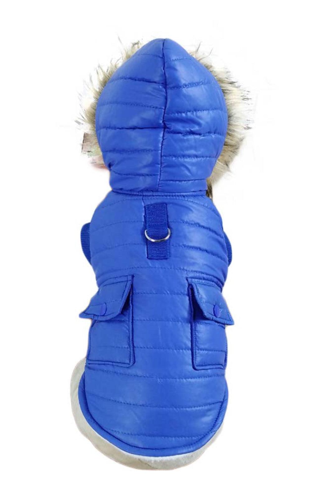 Keep your doggy nice and warm during the cold weather with Paris Pawture Hoodie Quilted Parka. It is made from 100% Polyester that is very soft and fuzzy, giving your pet a nice warmth during the winter. Luxurious sherpa fleece lining & faux-down insulation with functional cargo pockets with gartered armholes to fit nicely on your dog. It is so easy to put on and take off with no velcro or zippers need to secure it. It just slips on easily and you don’t waste time struggling with your pet.